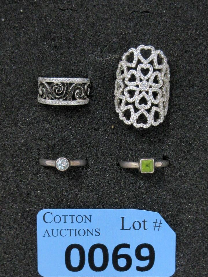 2 Gemstone rings, 1 crystal swirl band ring and 1 crystal heart filigree ring (face measures mm x 28 mm).