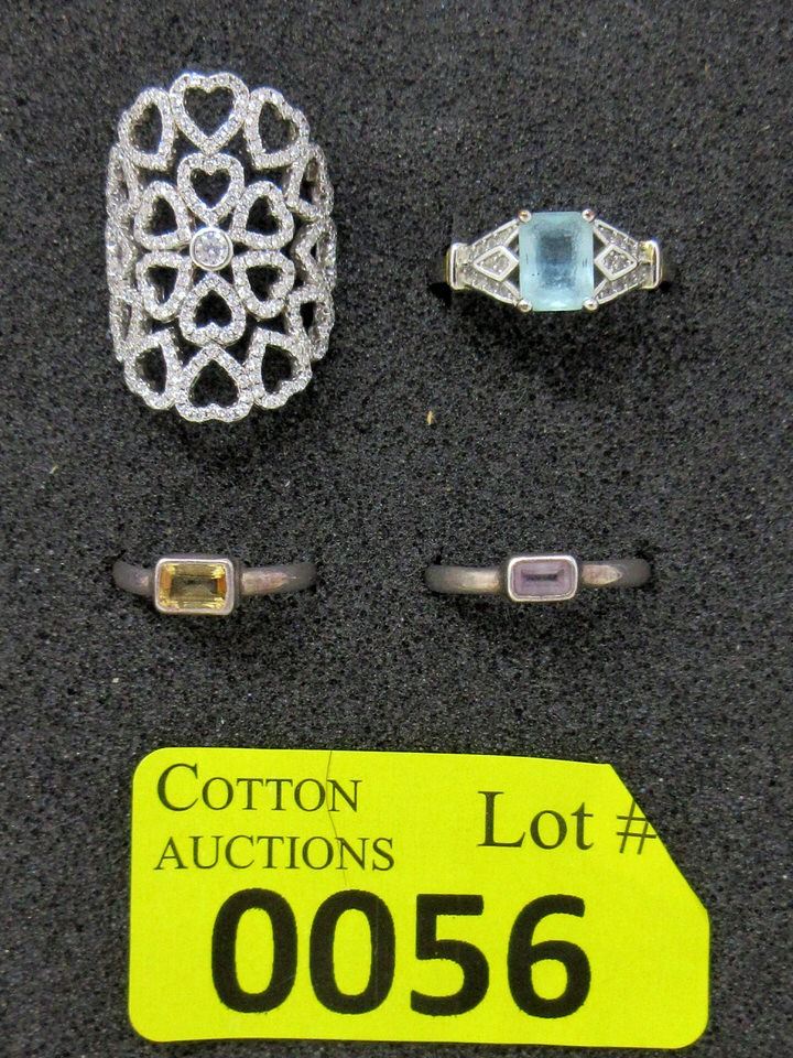 1 crystal embedded ring, 1 blue crystal ring, and 2 gemstone stacker rings.