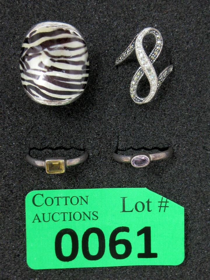1 Enameled top, 1 crystal embedded figure 8 , and 2 gemstone stacker rings.