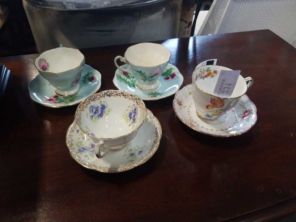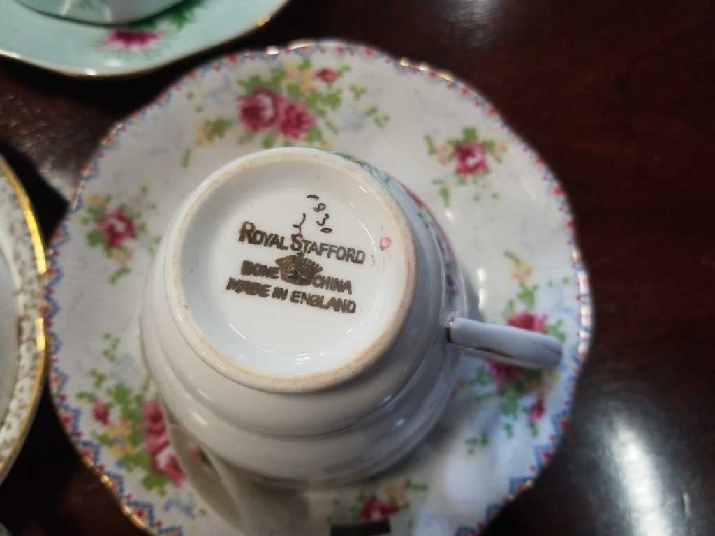 4 TEACUPS AND SAUCERS, FOLEY, ROYAL STAFFORD AND OTHER