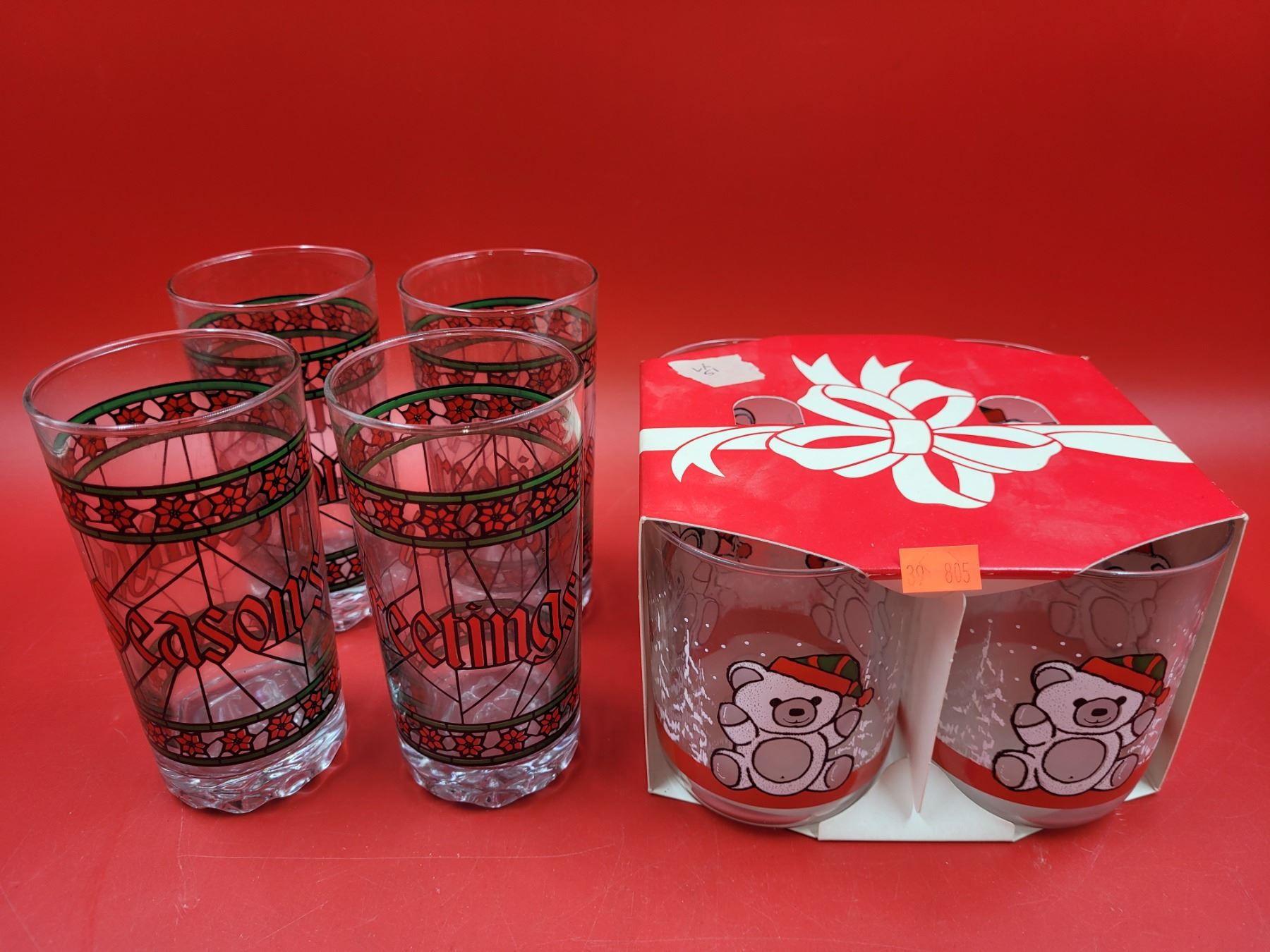 4 Teddy Bear Christmas Glasses & Seasonal Glasses