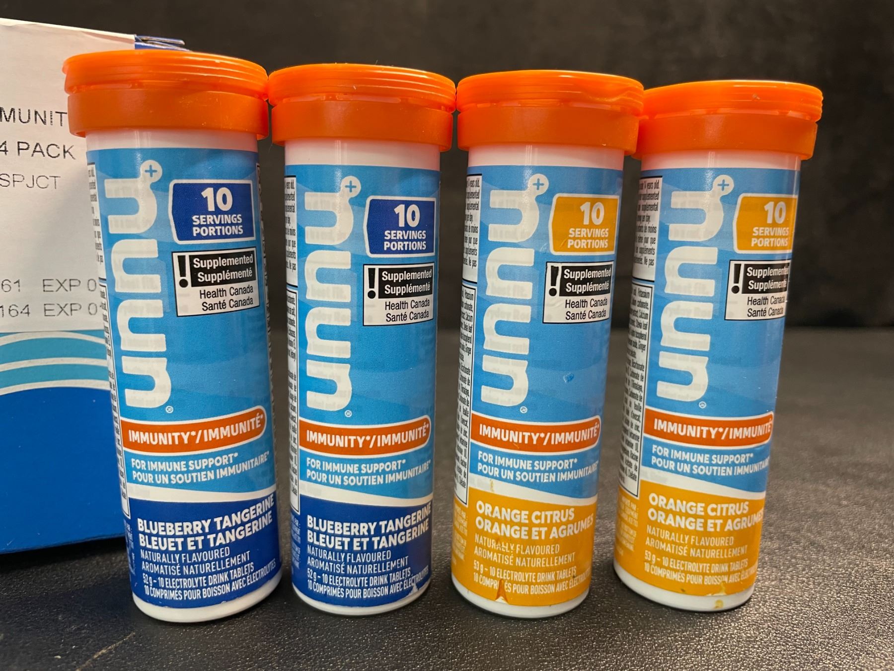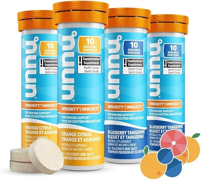 - Nuun Immunity Electrolyte Drink Tablets, Box of 4 Tubes, (40 Servings,) Blueberry Tangerine and Orange Citrus, Immune Support Hydration Supplement, Electrolytes, Antioxidants, Vitamin C