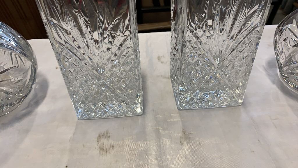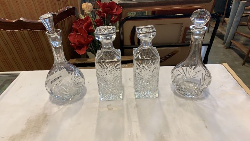 4 VINTAGE CRYSTAL AND CUT GLASS DECANTERS