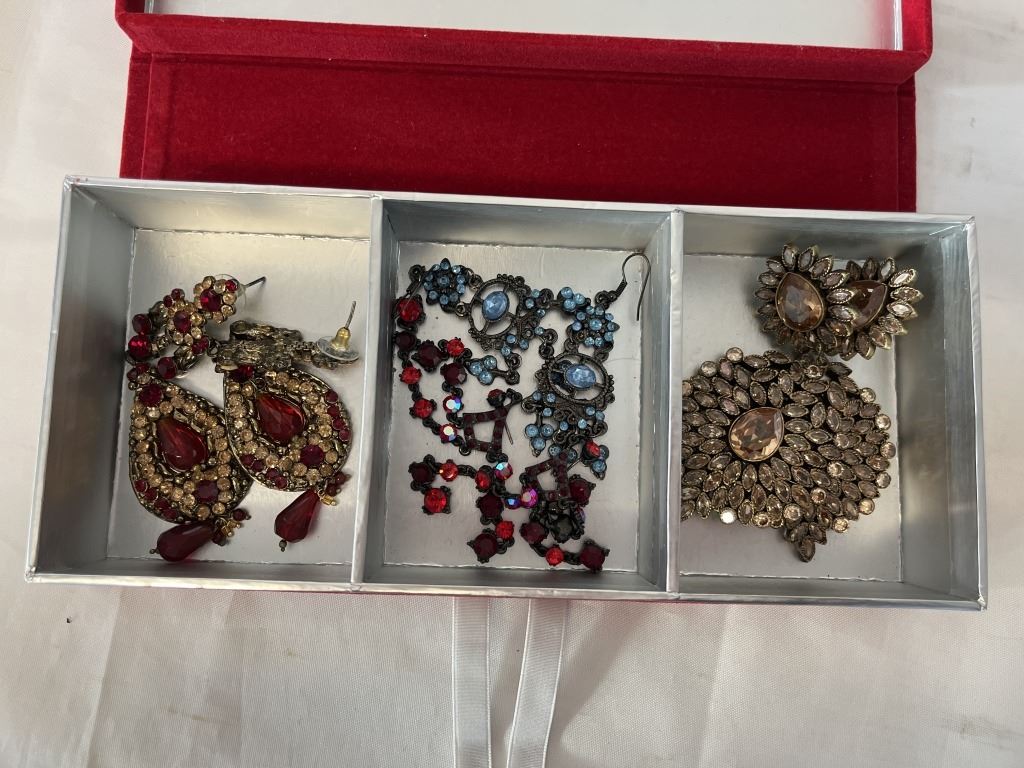 4 VINTAGE PAIRS OF EARRINGS IN RED VELVET BOX