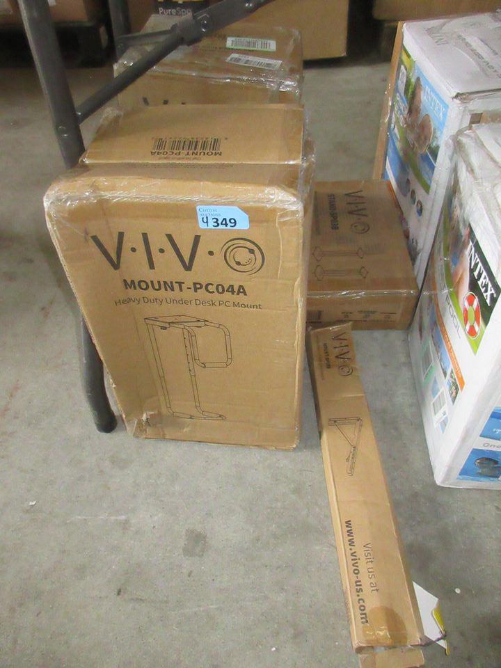 2 Under desk PC mounts, twin pack of speaker stands, twin pack of sockets for