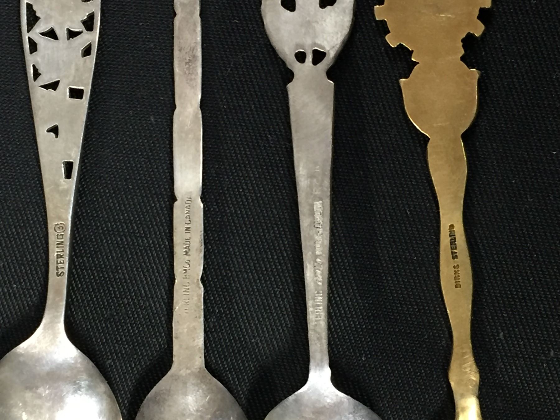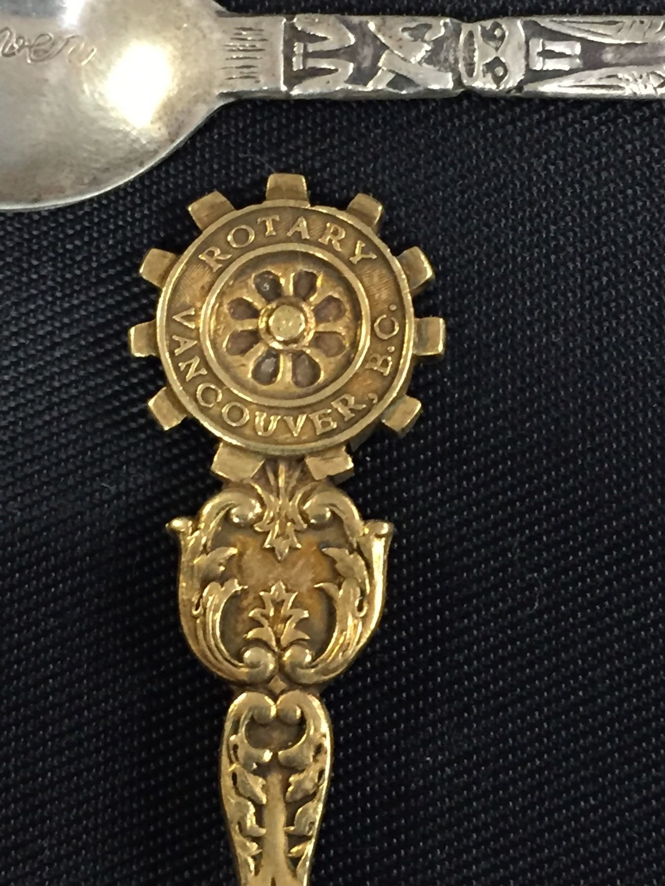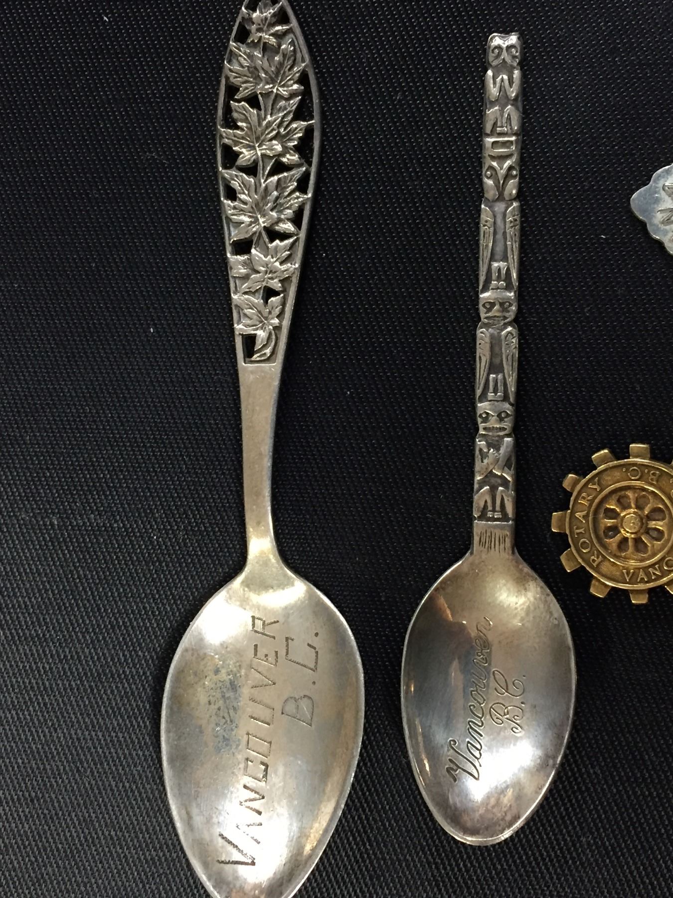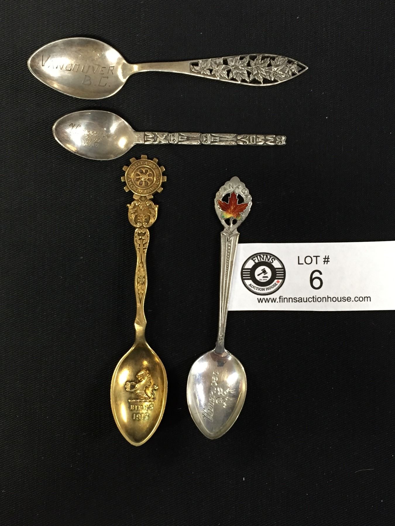 4 Vancouver BC Birks Sterling Silver Souvenir Spoons. 1913 Rotary Vancouver BC. Totem Pole and Maple Leaf.