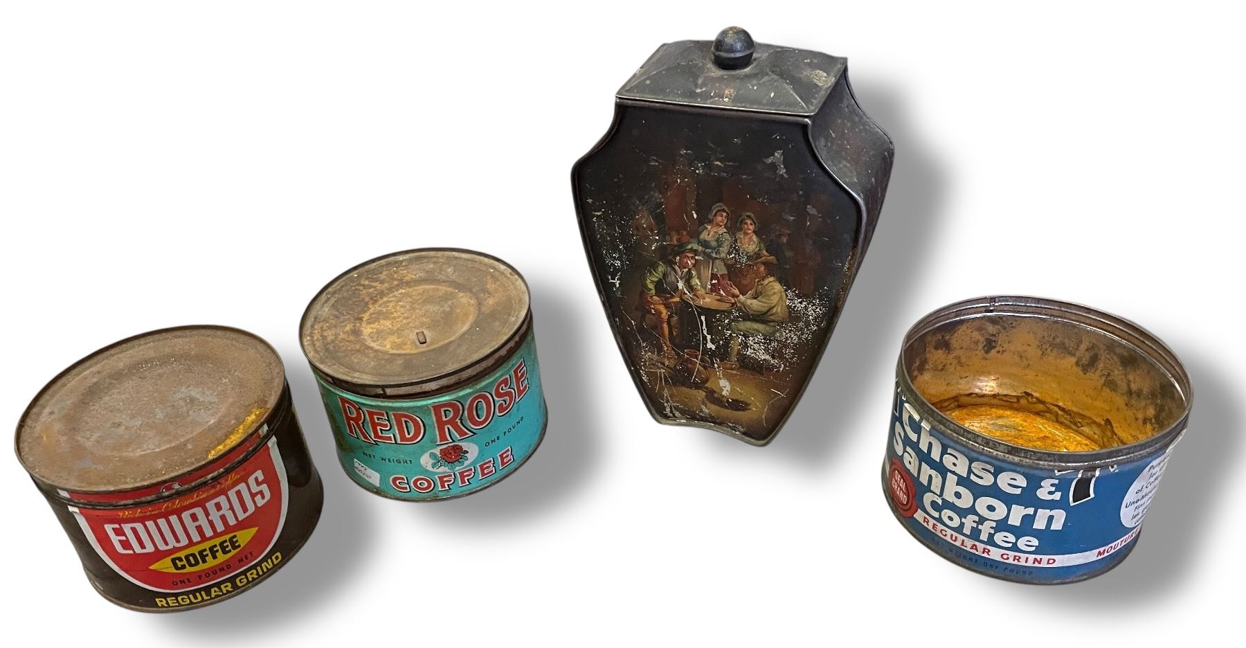 Edwards Coffee, Red Rose Coffee and Candy tin have lids.