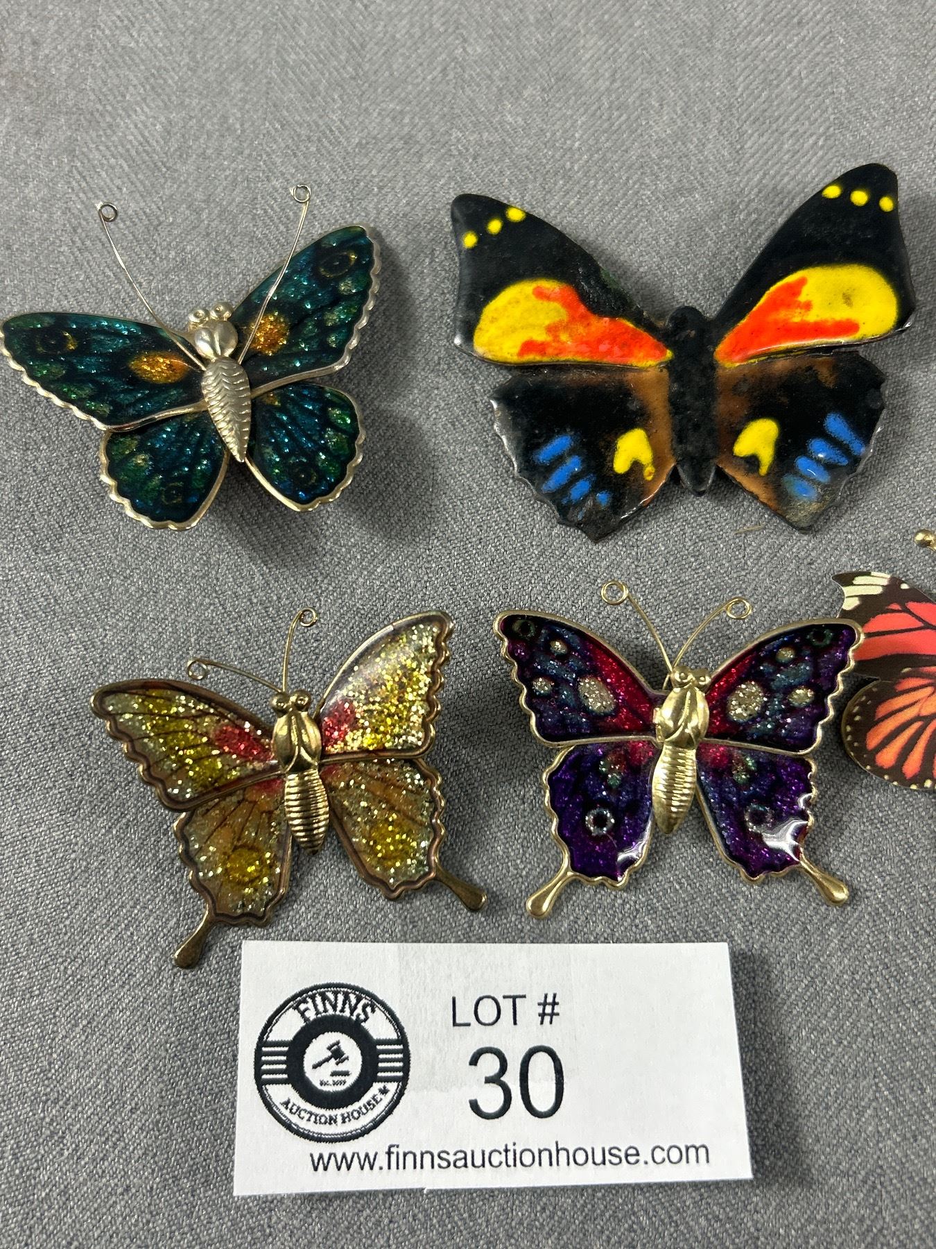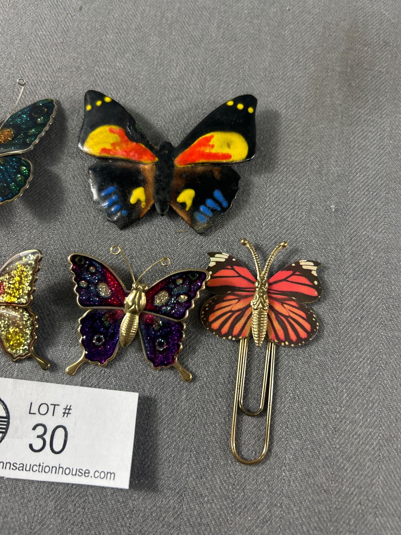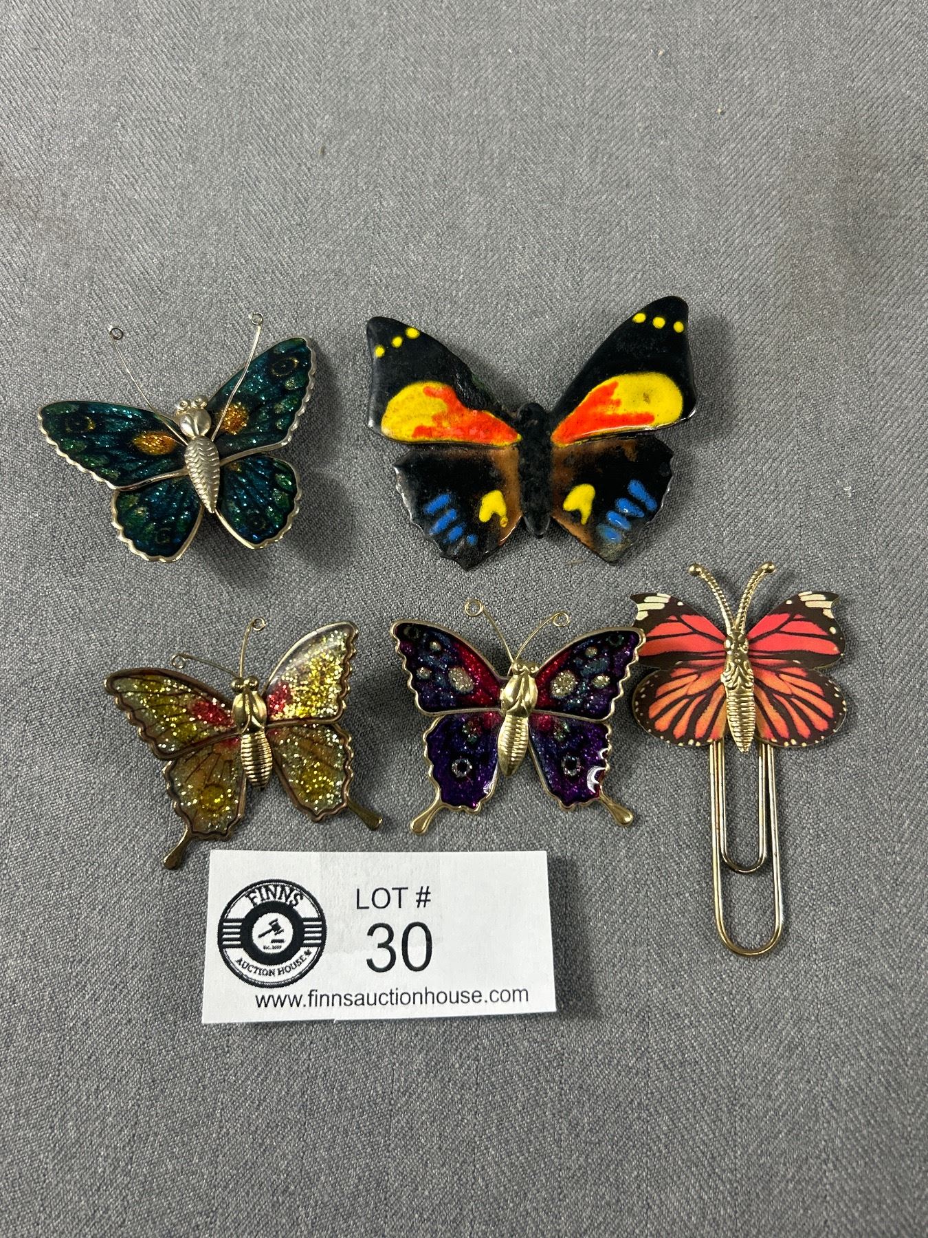4 Vintage Butterfly Brooches & 1 Paperclip Butterfly