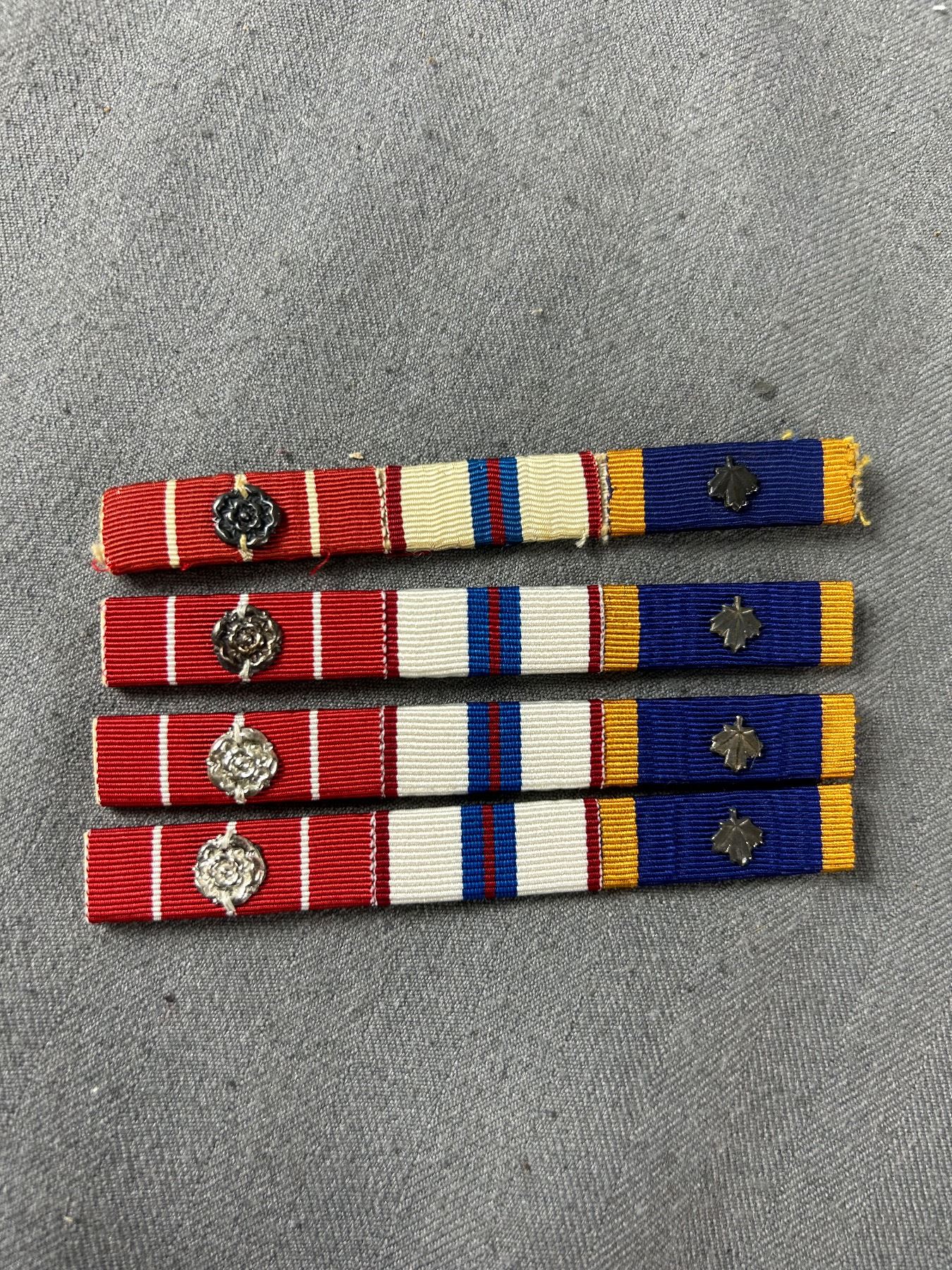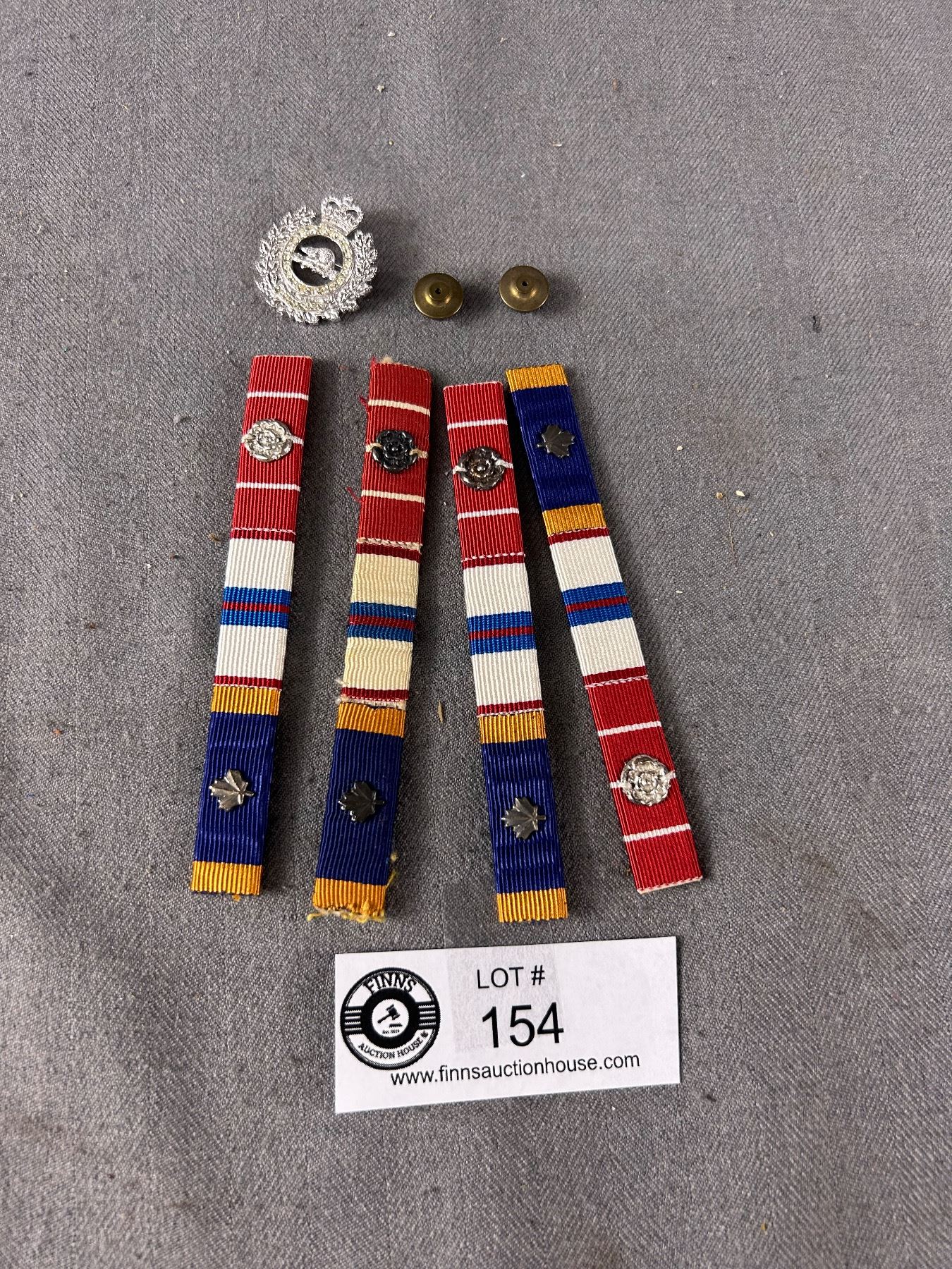 4 Vintage Canadian Ribbon Bars & Canadian Engineers Brooch w/ Tiny Rhinestones