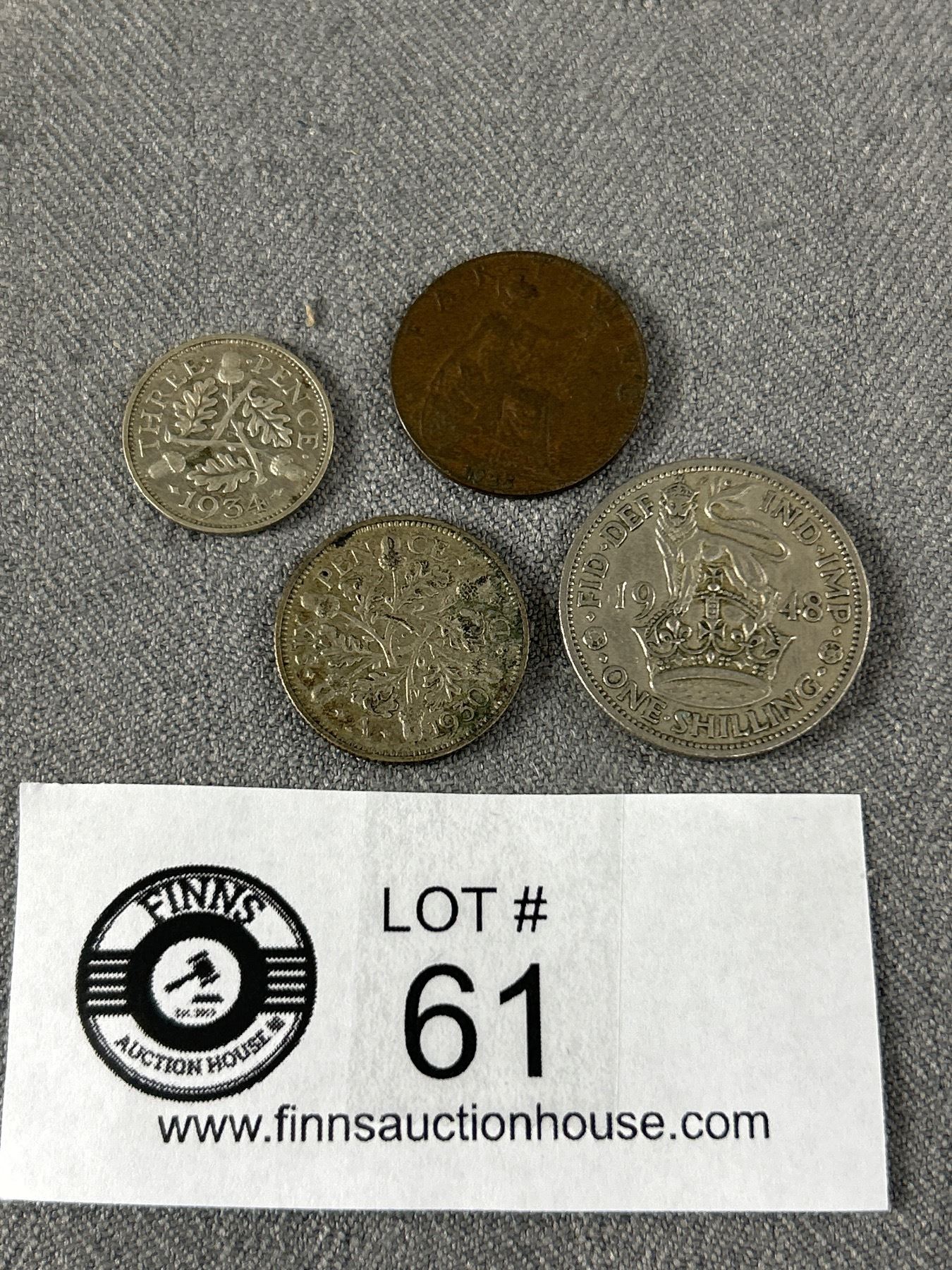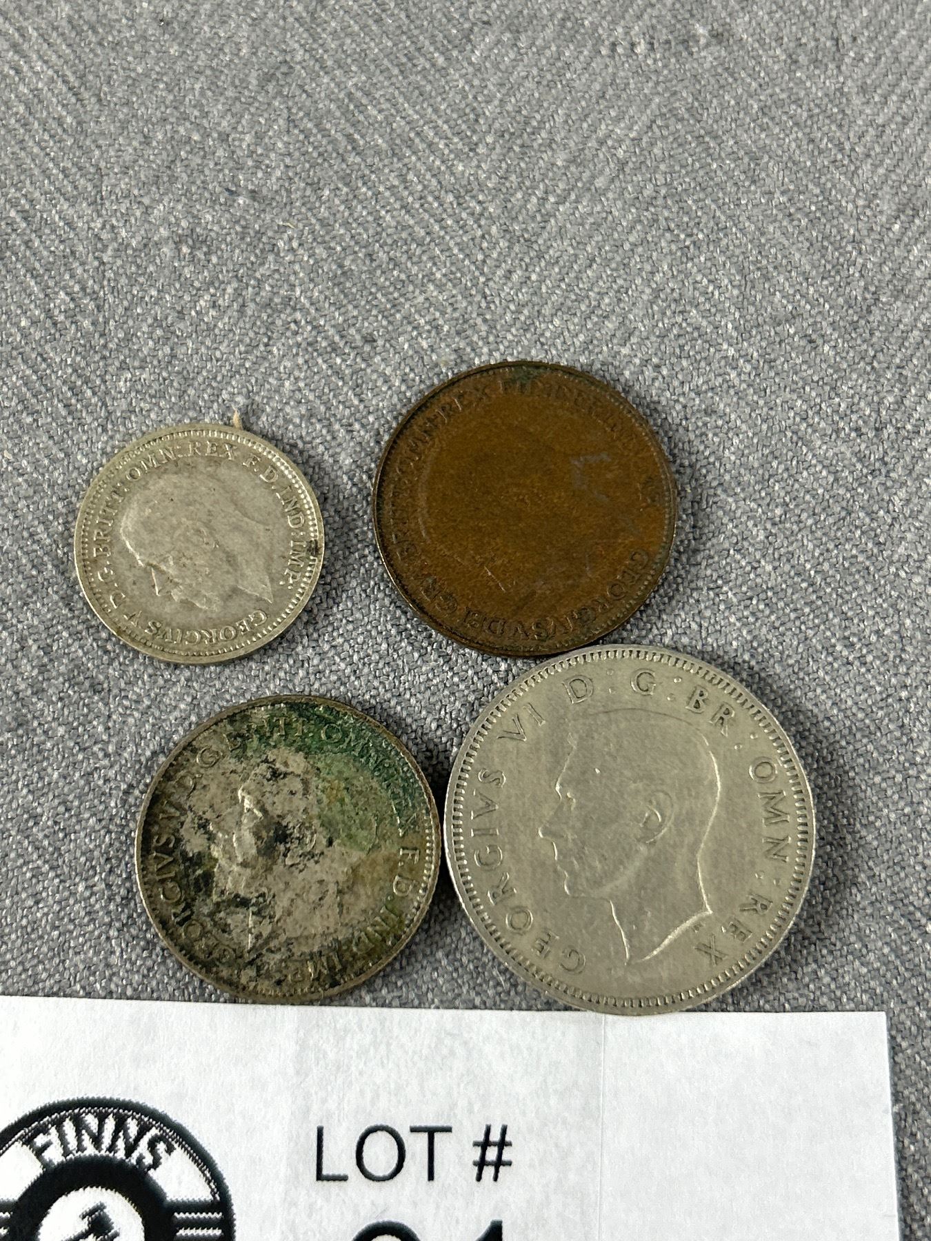 4 Vintage Early 1900's British Coins, Silver & Copper