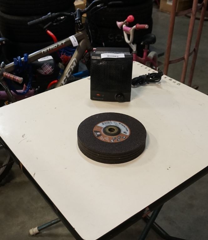 4 WALTER 9 INCH ABRASIVE DISCS AND HONEYWELL HEATER