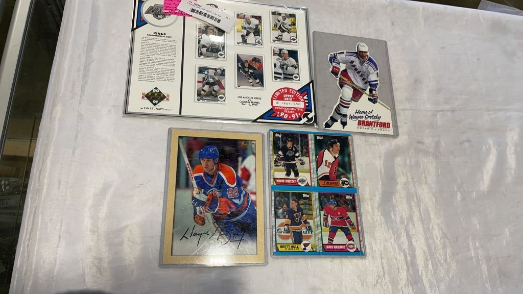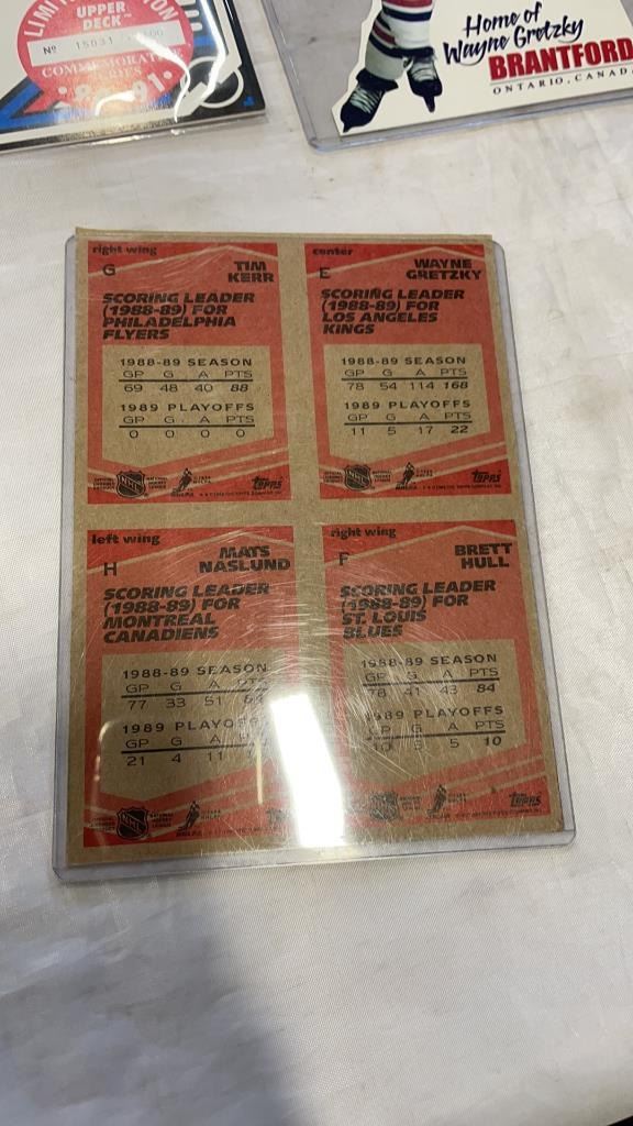 4 WAYNE GRETZKY ITEMS - LIMITED EDITION UPPER DECK SHEET UNCUT, POST CARD, BEEHIVE GRETZKY