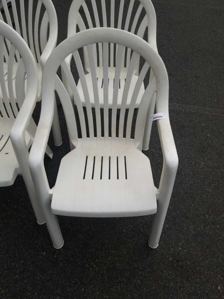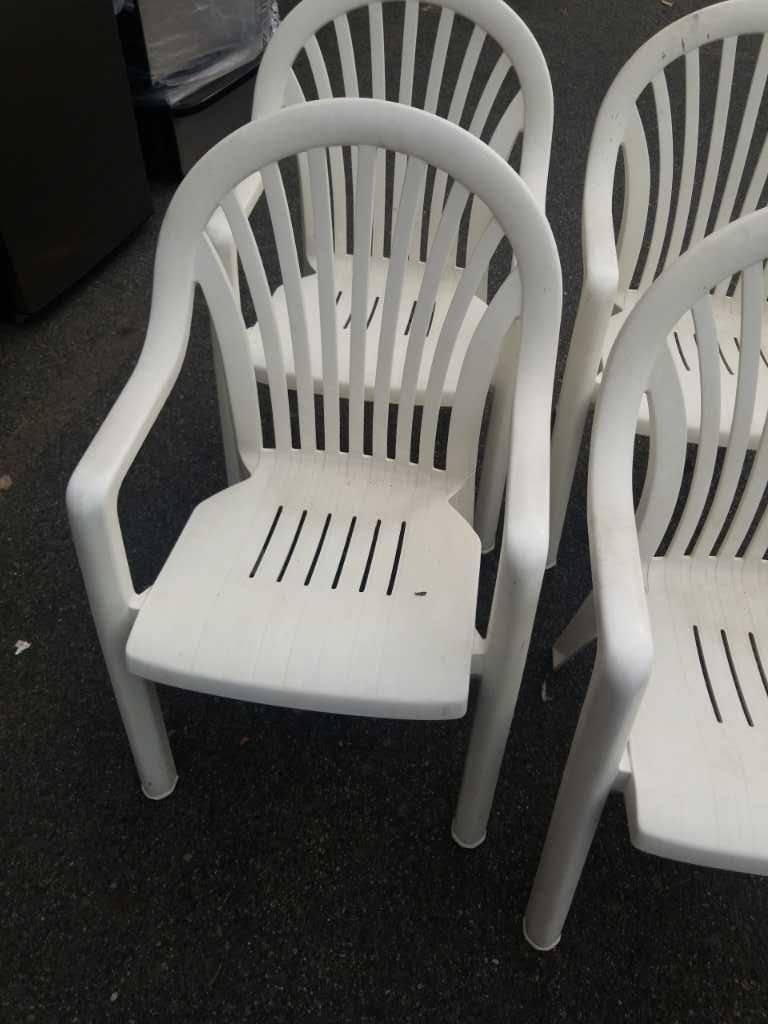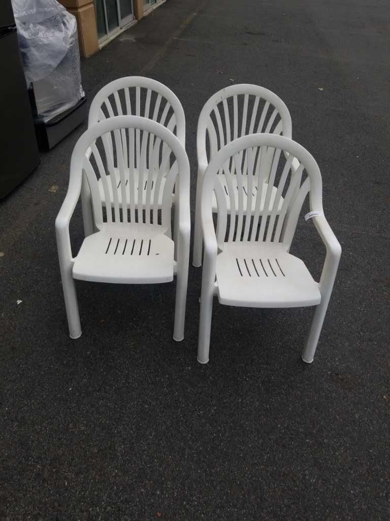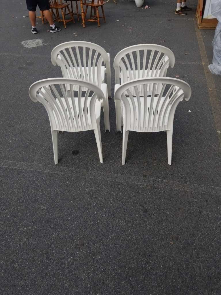 4 WHITE STACKING PATIO CHAIRS
