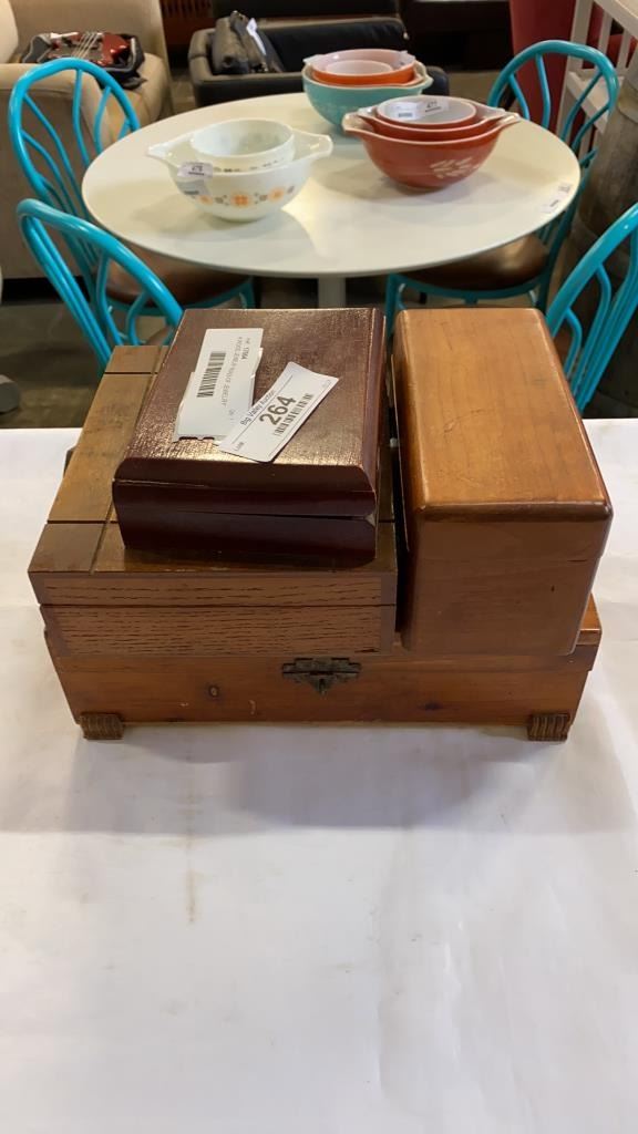 4 WOOD JEWELRY BOXES OF JEWELRY