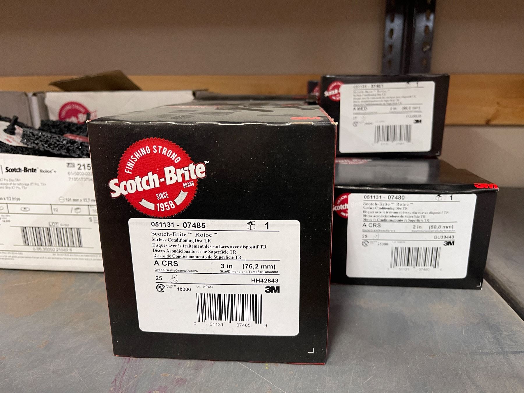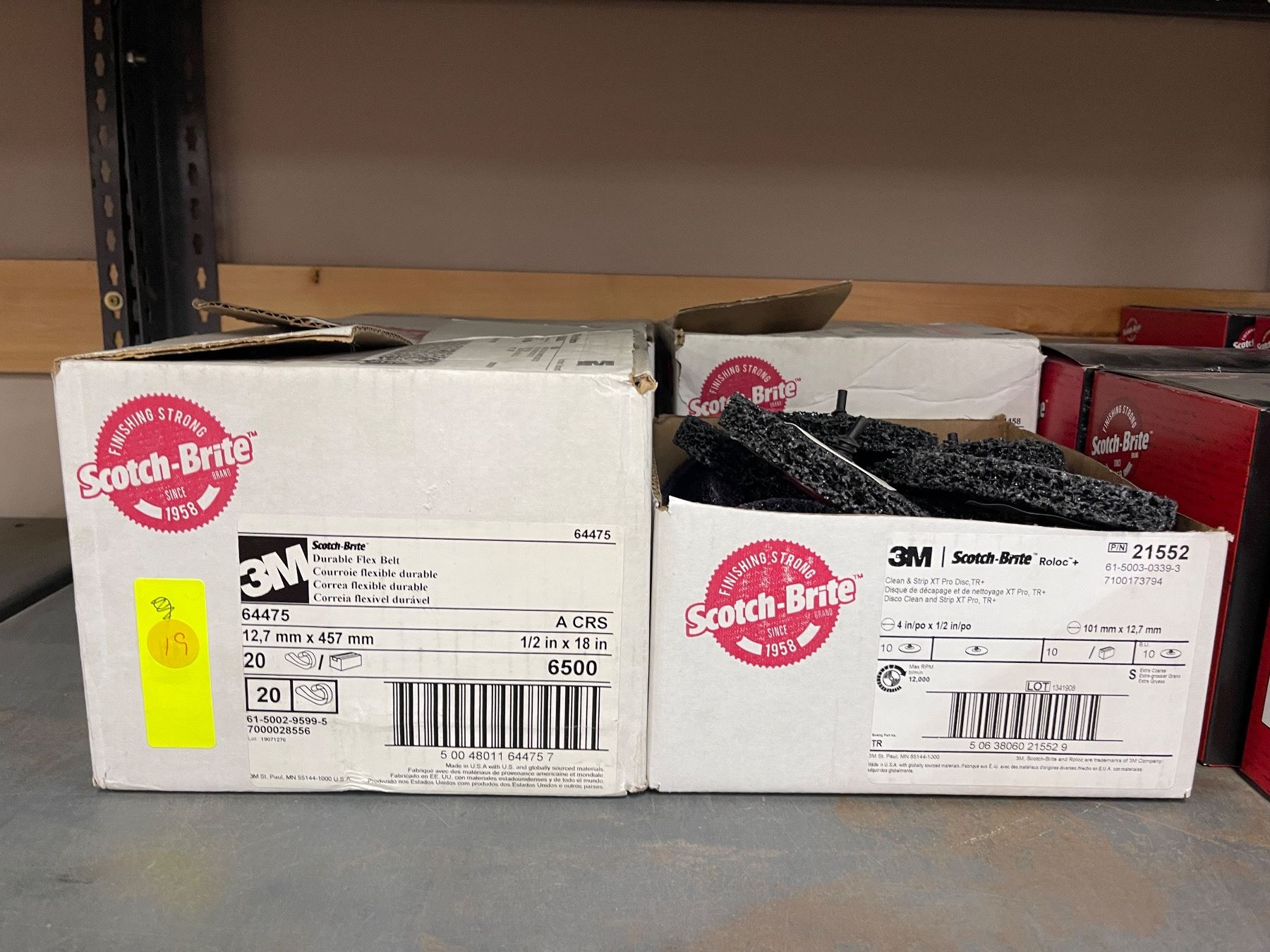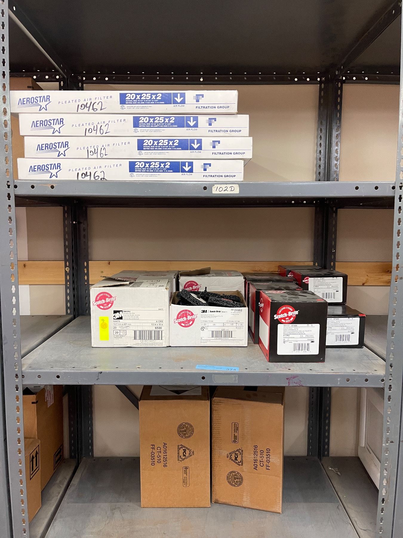 4 - boxes of Pleated air-filters, 3M Scotch Brite Strip Pro Disc, Flex belts, Surface conditioning discs