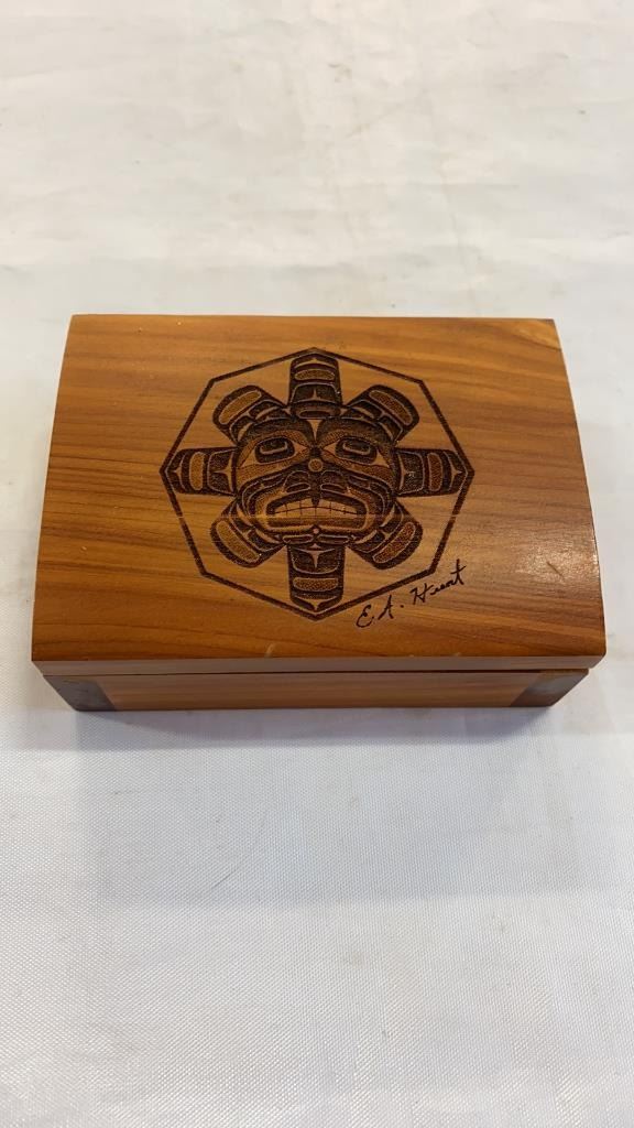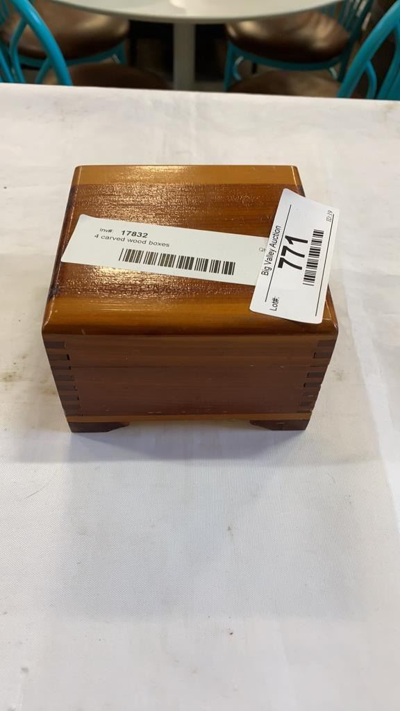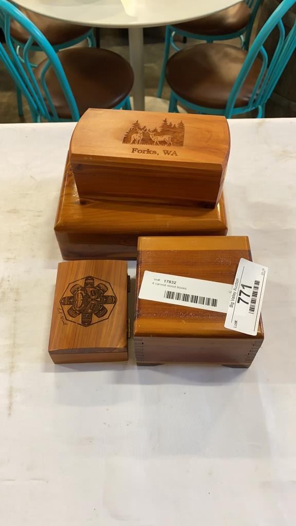 4 carved wood boxes