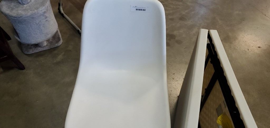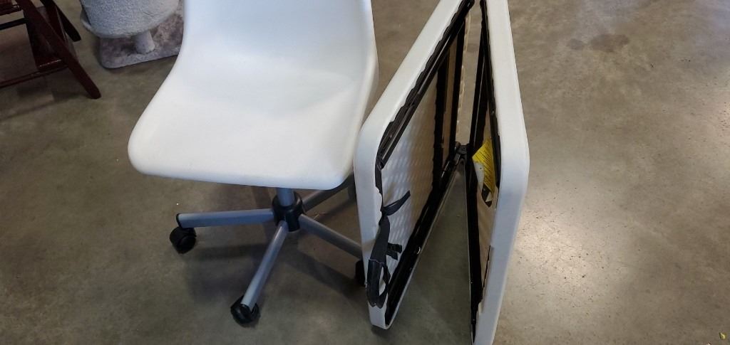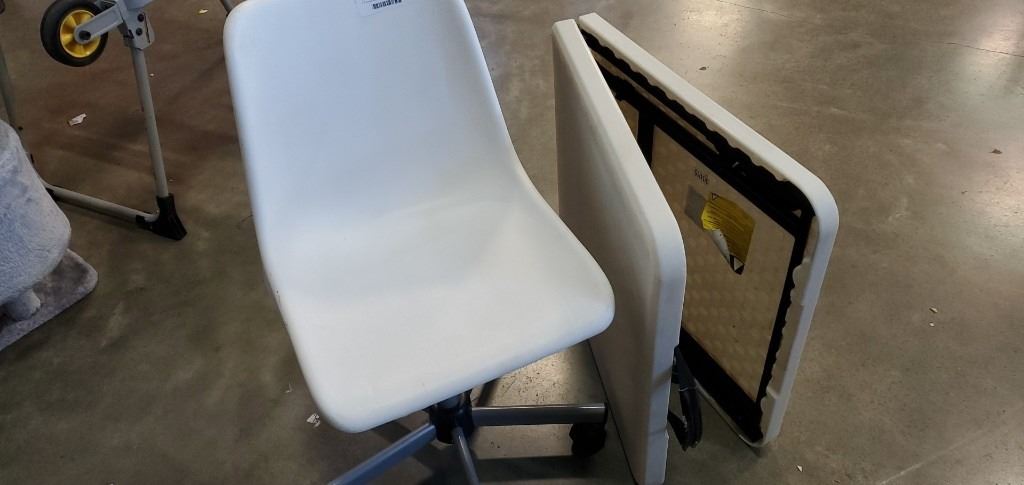 4 ft folding table and plastic swivel chair