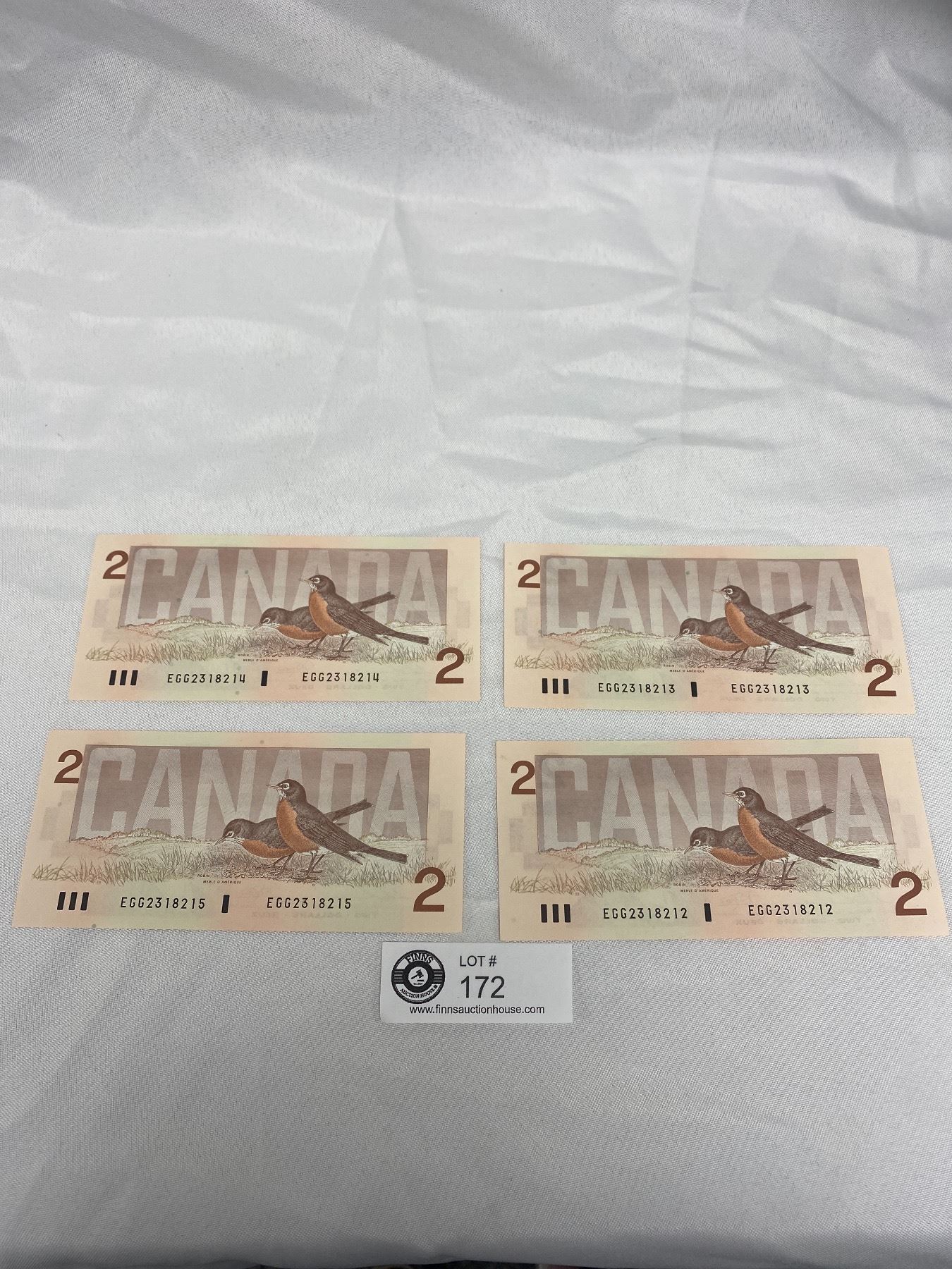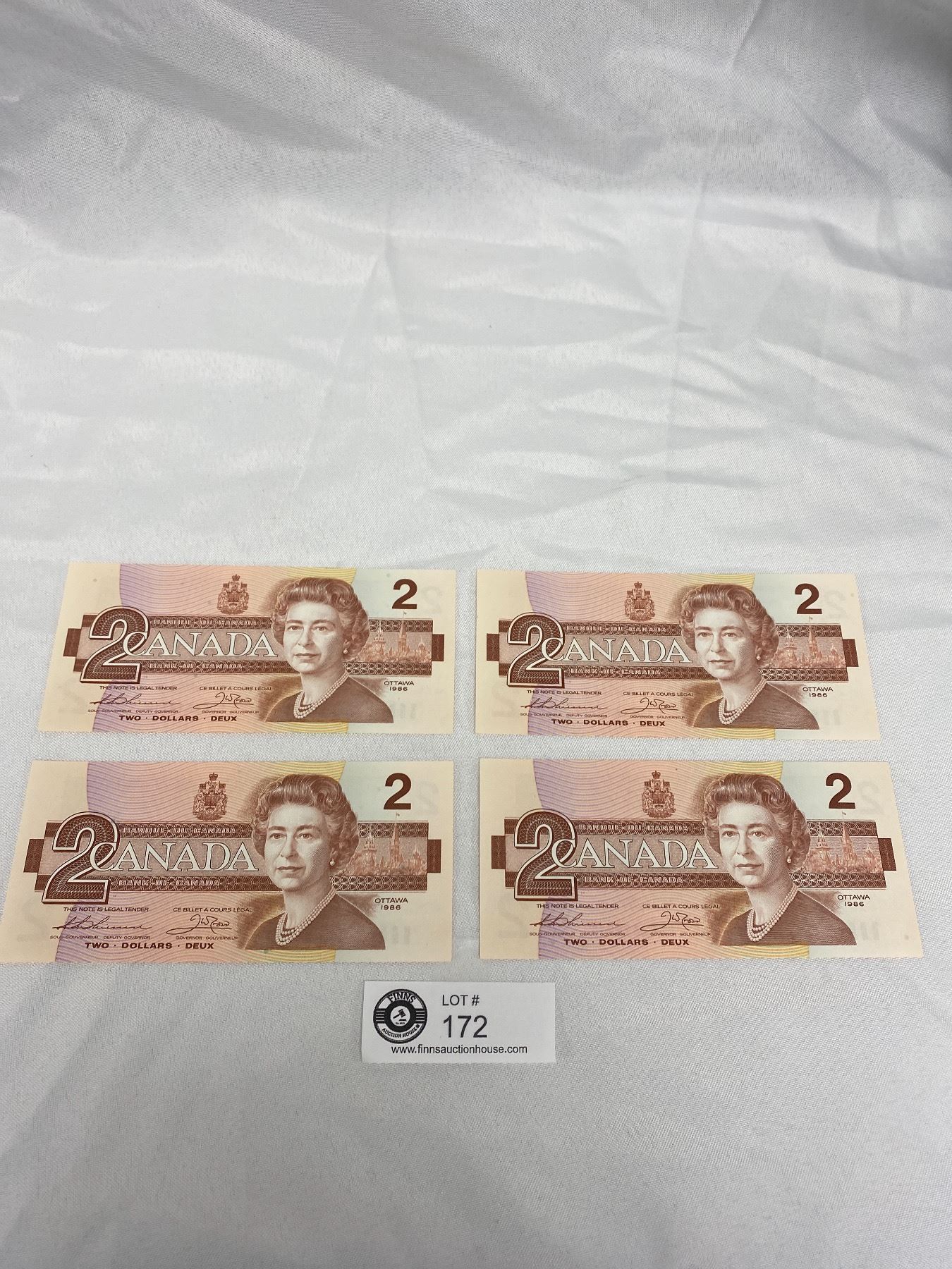 4 in Sequence 1986 2 Dollar Canadian Bank Notes