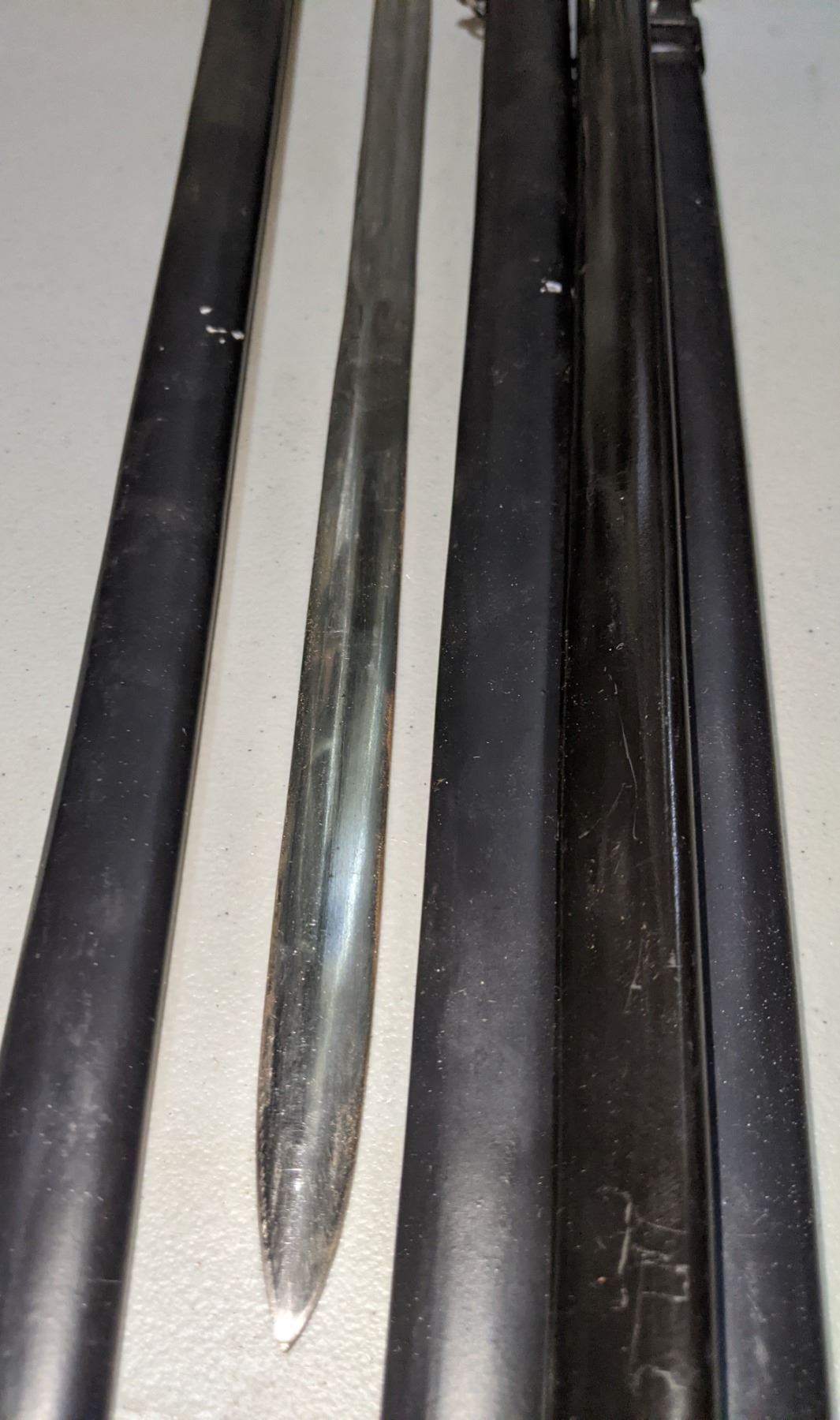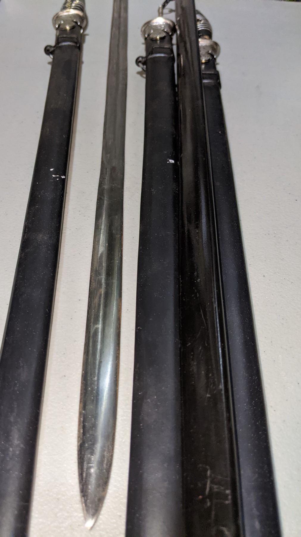 4 metal swords with scabbards (metal sheath ) used in show