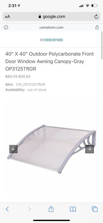 40" X 40" Outdoor Polycarbonate Front Door Window Awning Canopy-Gray