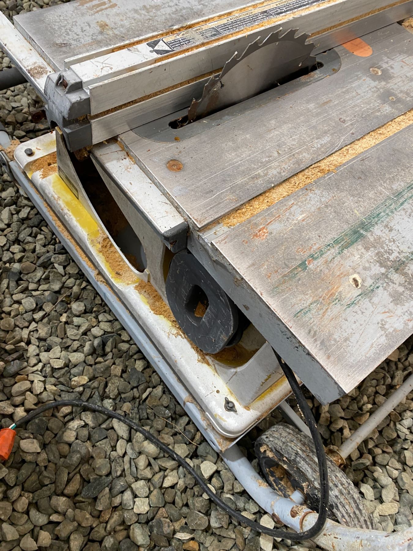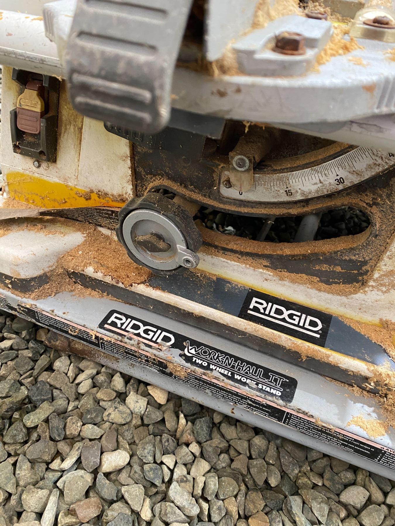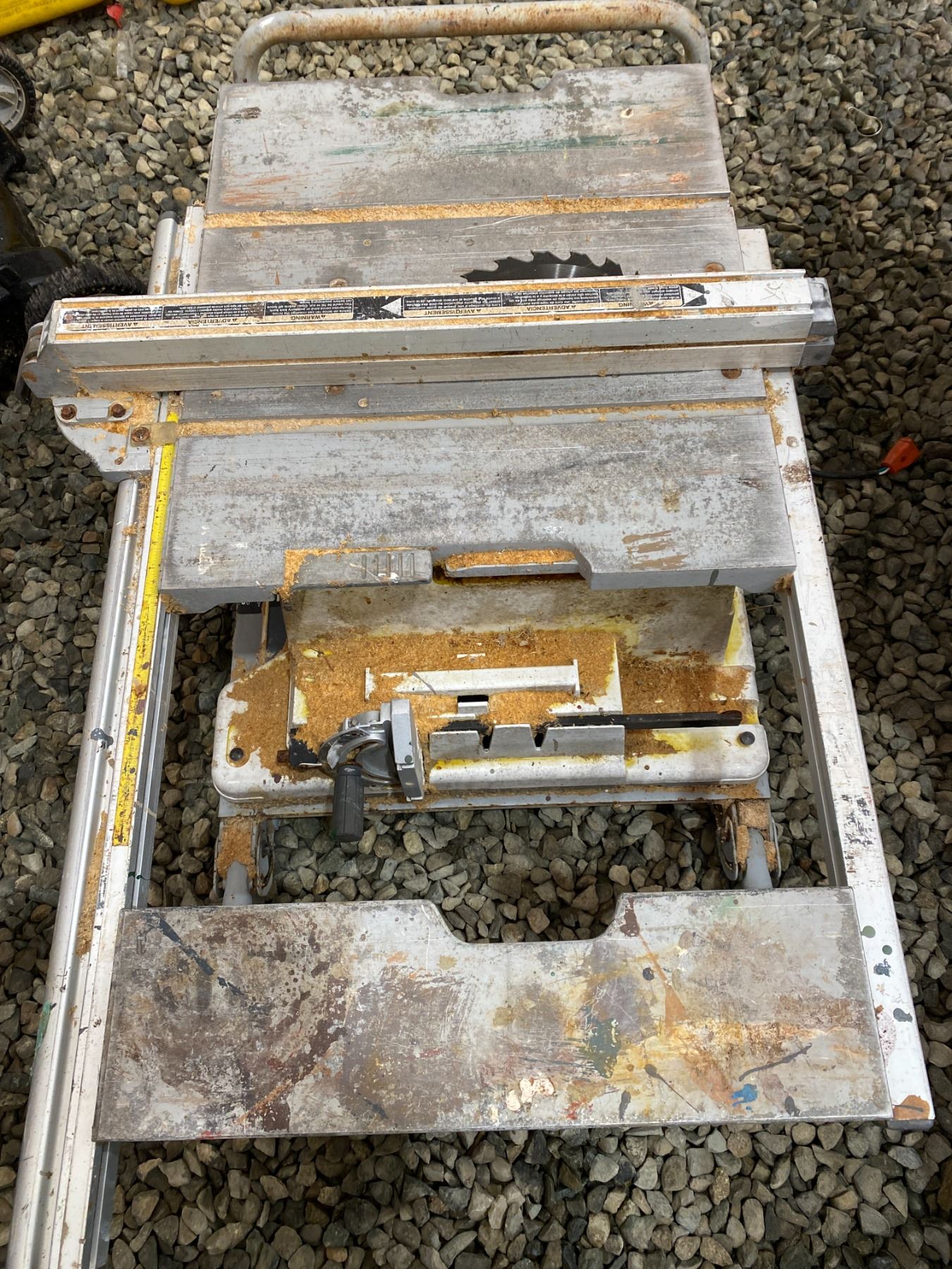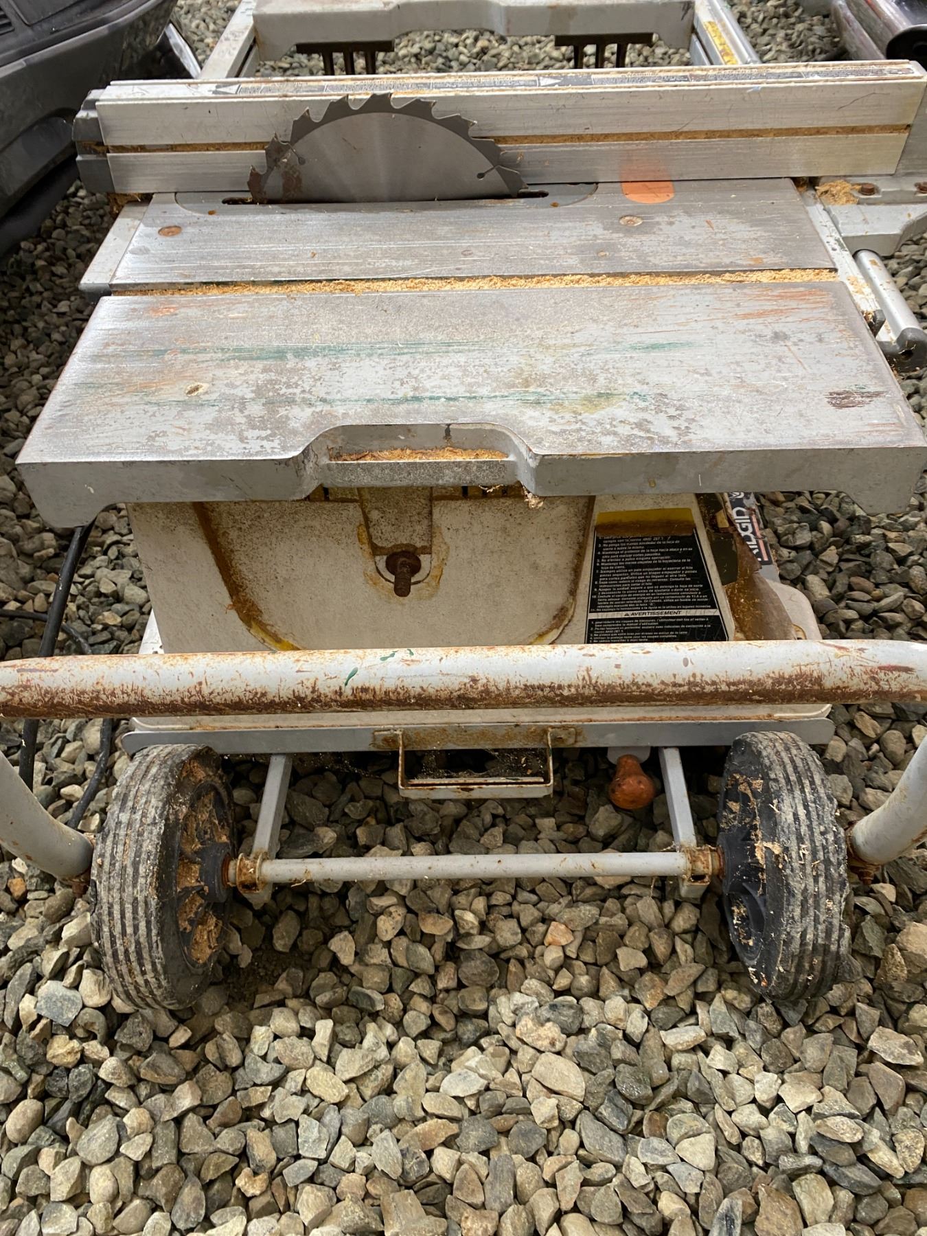 - Table Saw With Work-N-Haul It 2-Wheel Work Stand