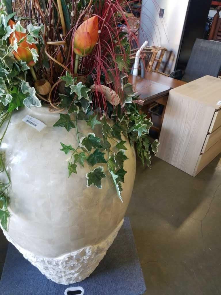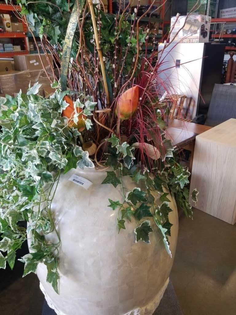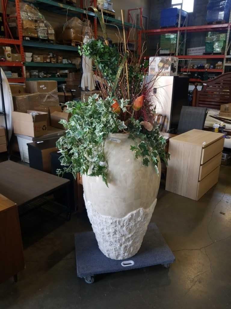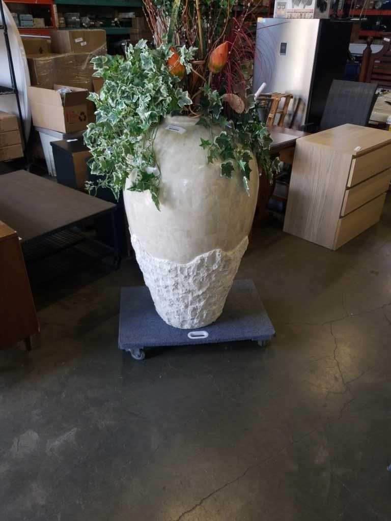 42" TALL VASE WITH ARTICIAL PLANTS