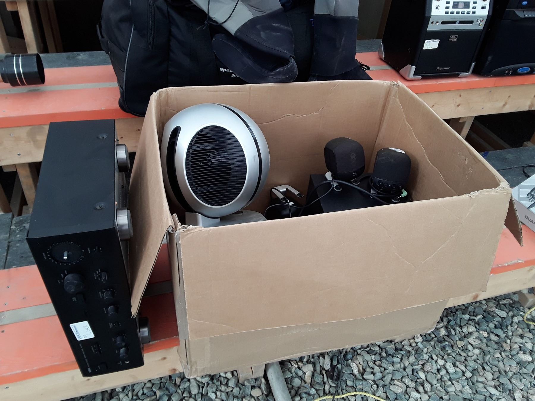 Box of electronics Inc. Amplifier speakers and more -- Untested -- 17% Buyer Fee. Payment Processed through Live Auction World ( Visa or Master Card ) pick up Saturday, or Tuesday