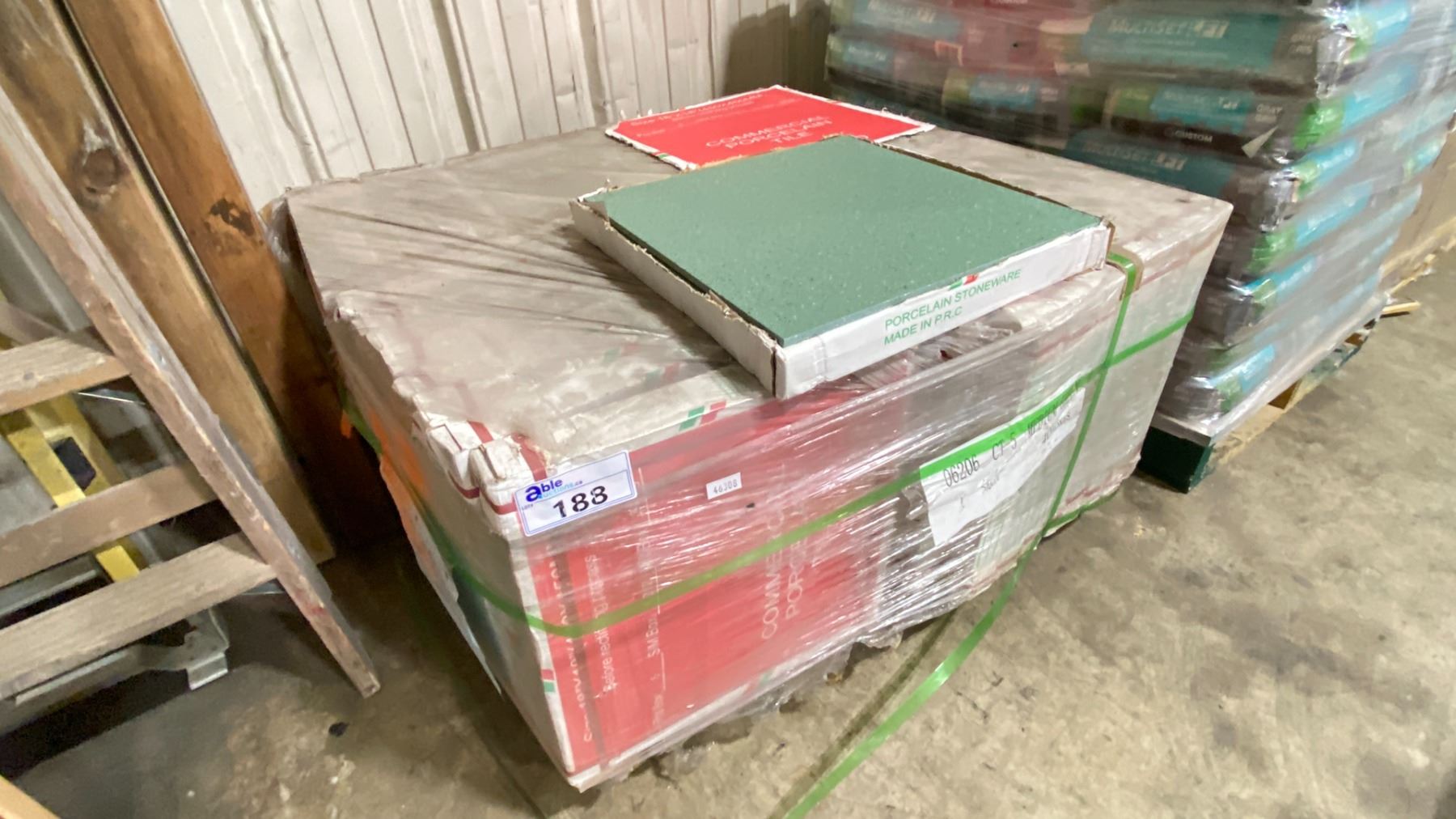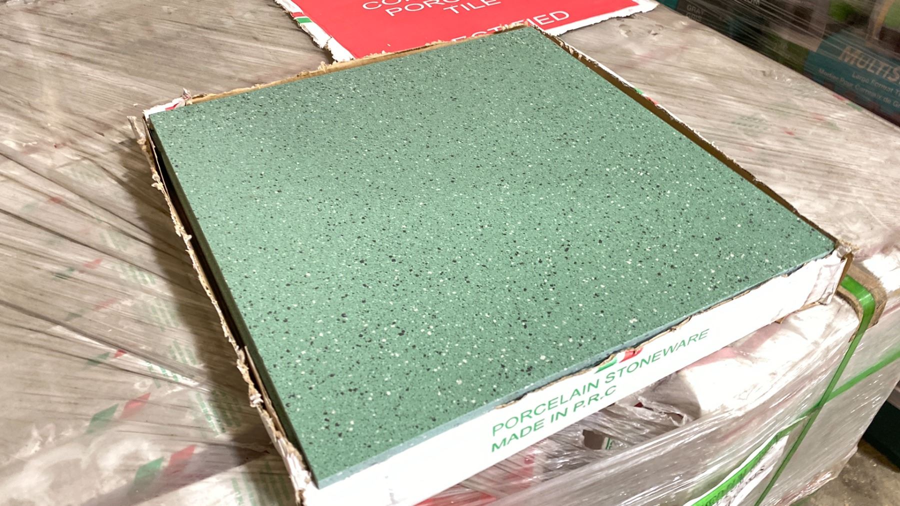 432SQ FT OF MEDIUM GREEN 18"X18" COMMERCIAL PORCELAIN FLOOR TILE 10.8SQ FT, 5 PCS PER BOX, 1.012 SQ METERS PER BOX 40 BOXES, 432 SQ FT TOTAL *MUST TAKE ALL ON PALLET*