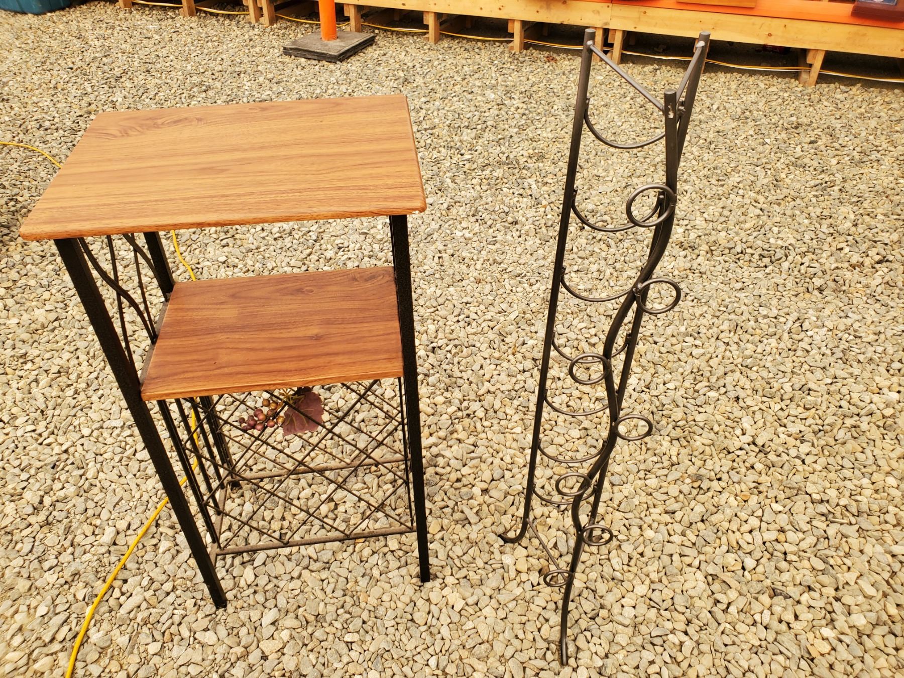 Small Metal & Wood Side Table & Metal Wine Bottle Holder - 17% Buyer Fee. Payment Processed through Live Auction World ( Visa or Master Card ) pick up Saturday, or Tuesday
