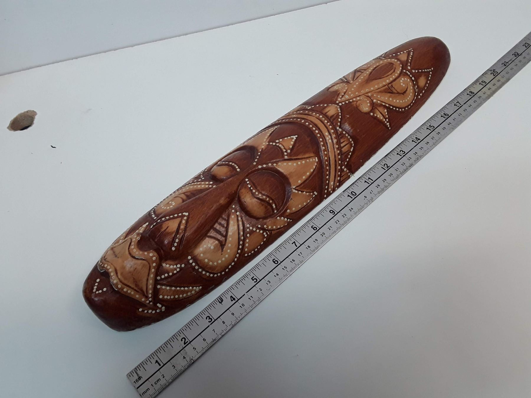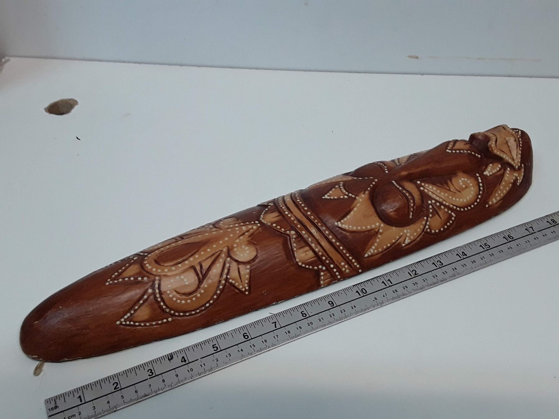 Medium Hand Carved Mask made in Indonesia apx 20" - 17% Buyer Fee. Payment Processed through Live Auction World ( Visa or Master Card ) pick up Saturday, or Tuesday