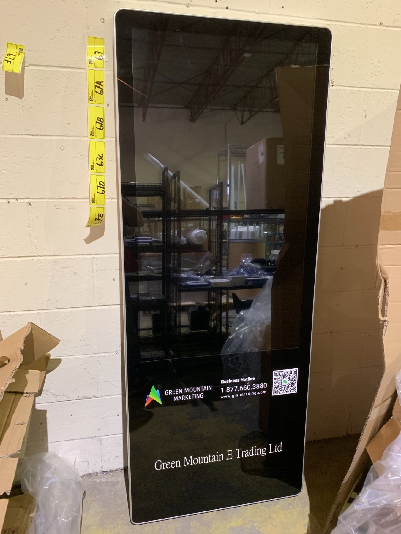 49" FLOOR STANDING ADVERTISING DISPLAY RUN BY ANDROID SOFTWARE MODEL #TYL-HGM490LA(N)04- NO POWER CORD, NO STAND, NO REMOTE NO ANTENNA