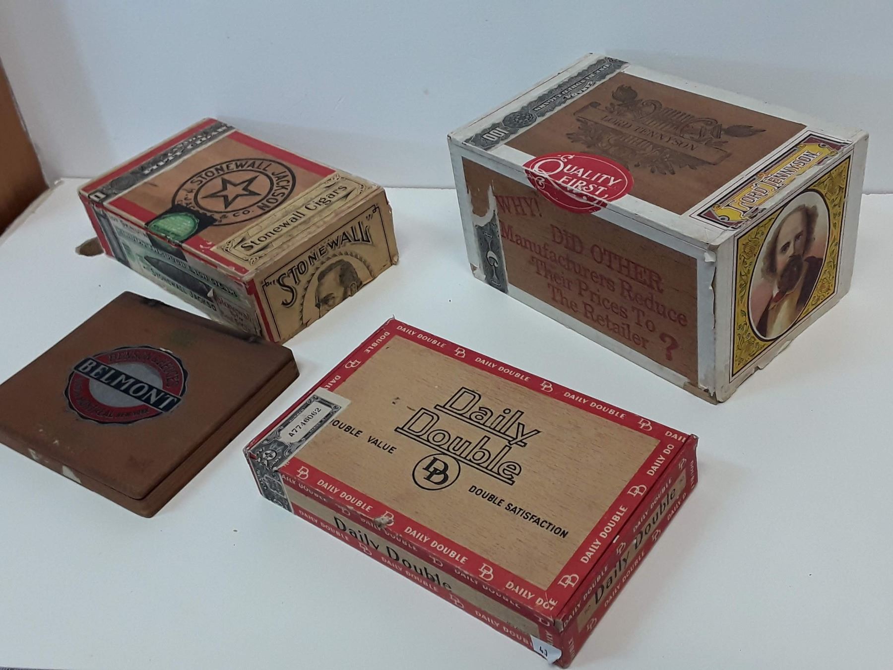 Lot of 4 Vintage Cigar Boxes - 17% Buyer Fee. Payment Processed through Live Auction World ( Visa or Master Card ) pick up Saturday, or Tuesday