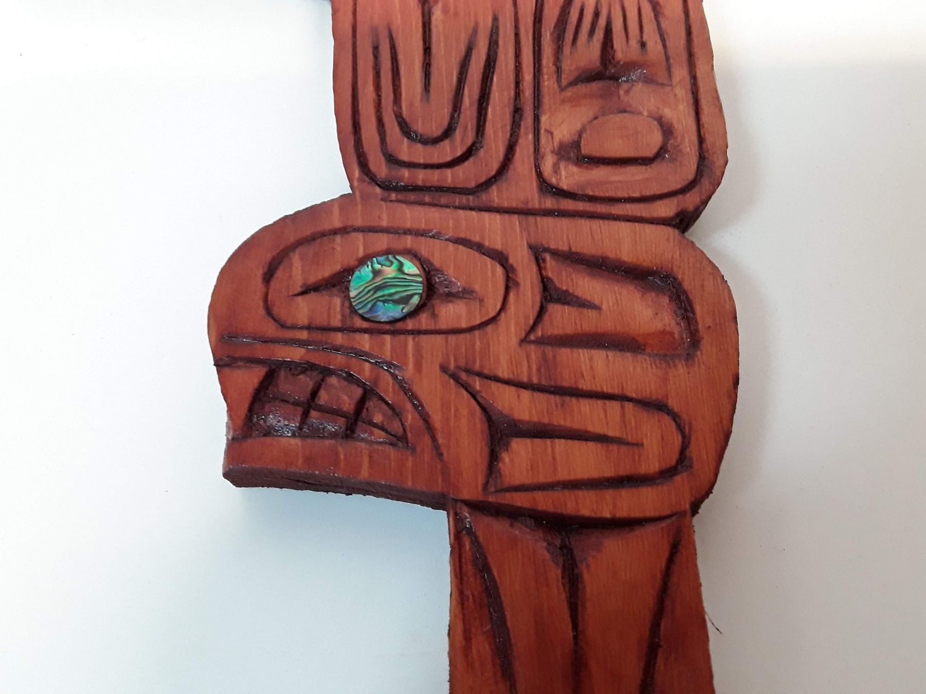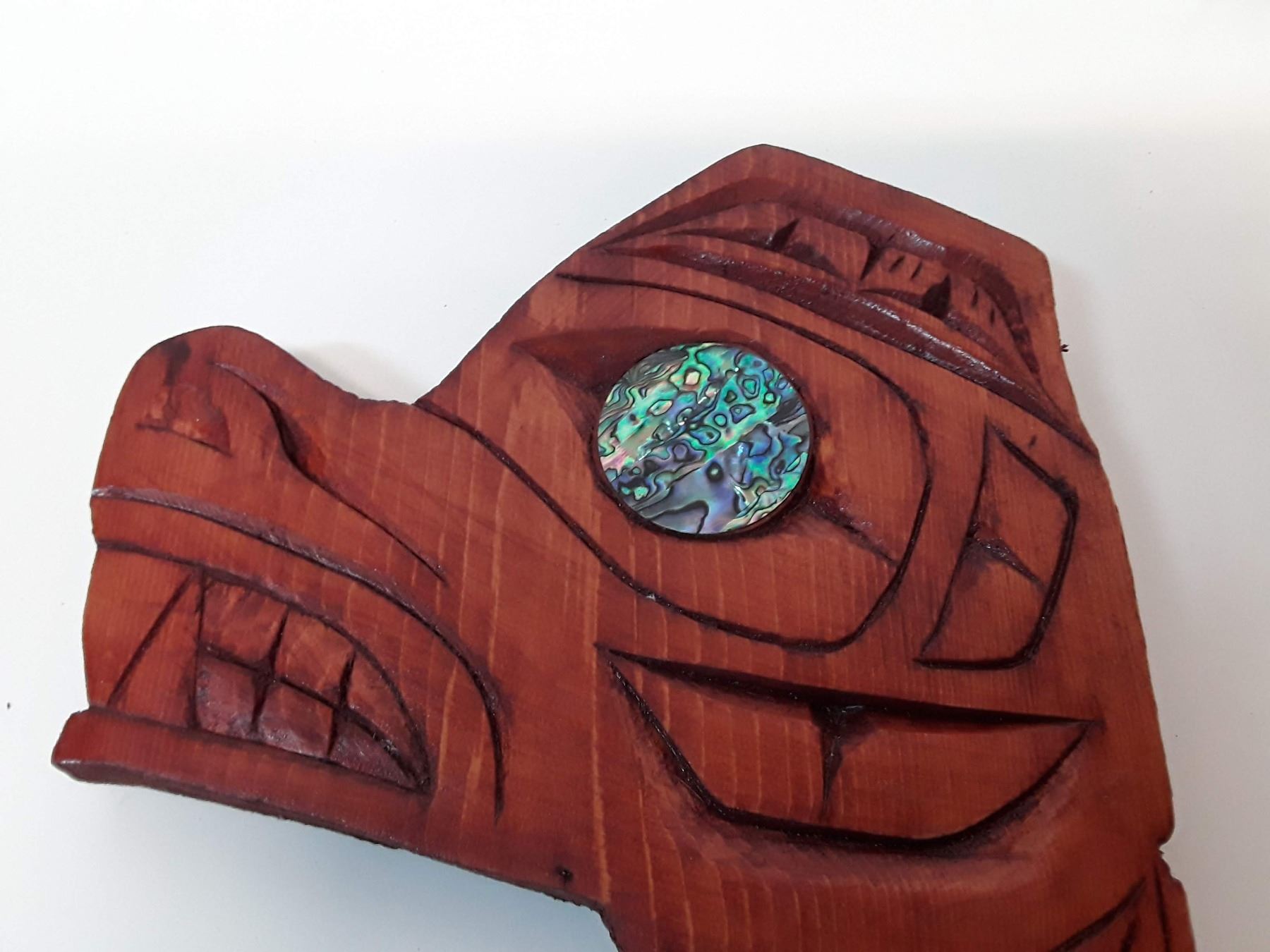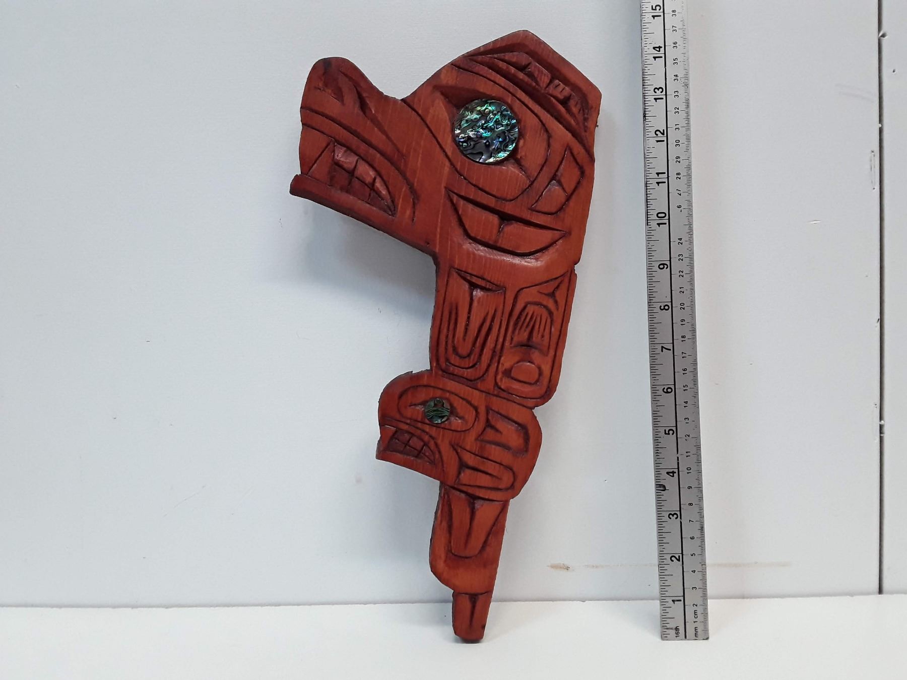 Northwest Coast First Nations Signed Carving By Jimmy Lewis With Abalone Inlay - 17% Buyer Fee. Payment Processed through Live Auction World ( Visa or Master Card ) pick up Saturday, or Tuesday