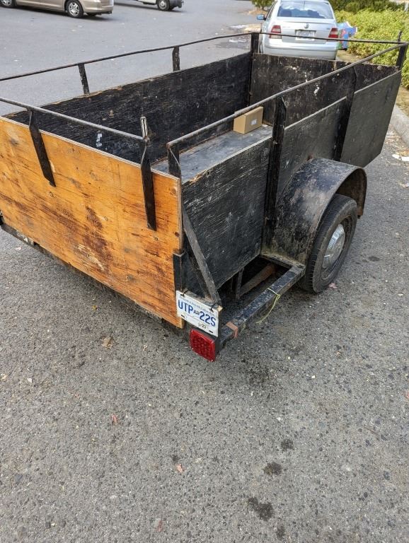 4FT X 8FT UBILT TRAILER WITH SLIDE UP REAR DOOR, CLAMP ON RETRACTABLE TRAILER WHEEL REGISTRATION IN OFFICE NEEDS LOCKING CLIP, INCLUDES NEW TRAILER LIGHTS