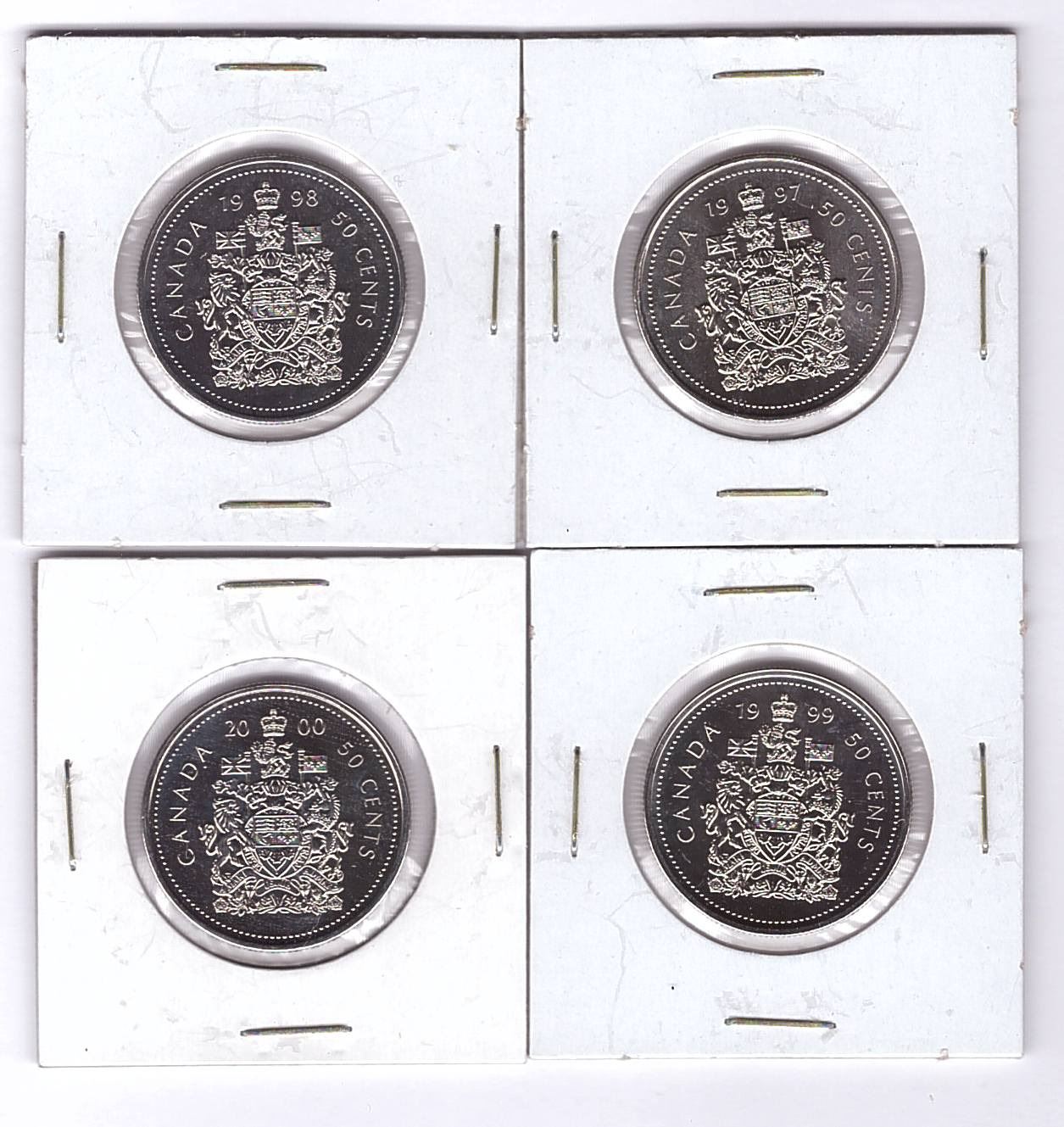 Uncirculated Royal Canadian Mint Half Dollar 50 Cent coins sealed in Mint Plastic