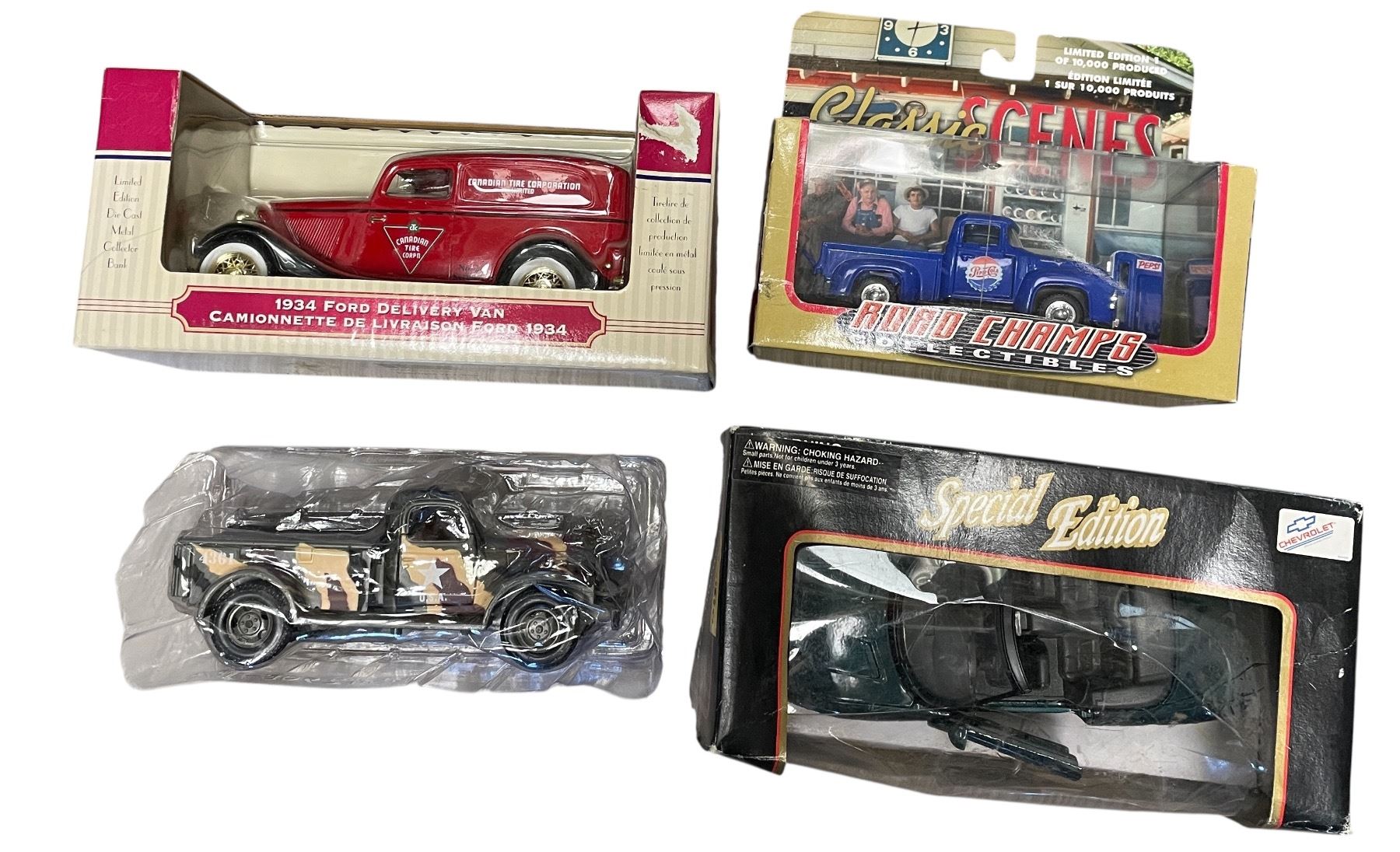 4x Collectible Toy Cars: Canadian Tire, USA Military, Pepsi-Cola, & More