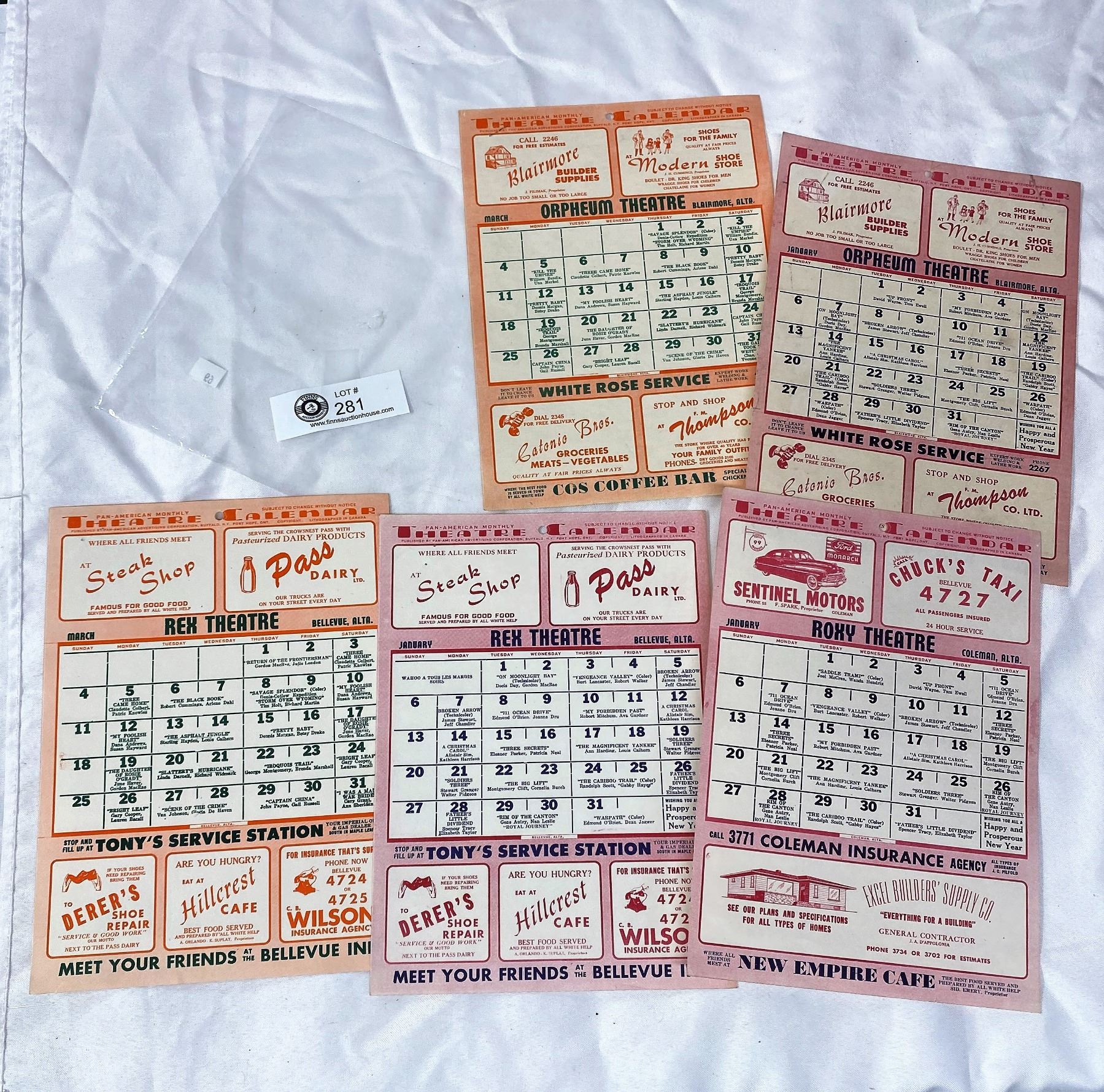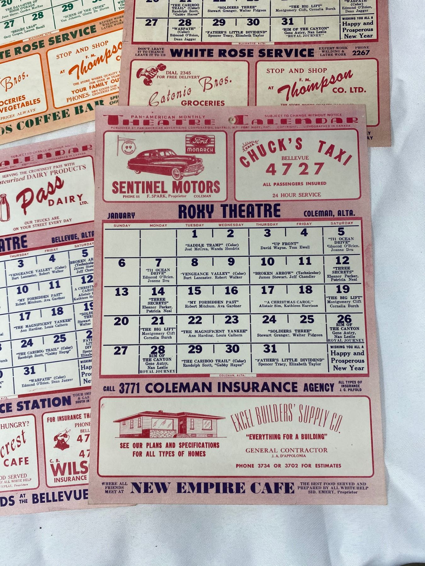 5 1950's Theatre Calendar Cards Roxy Theatre Coleman Albera