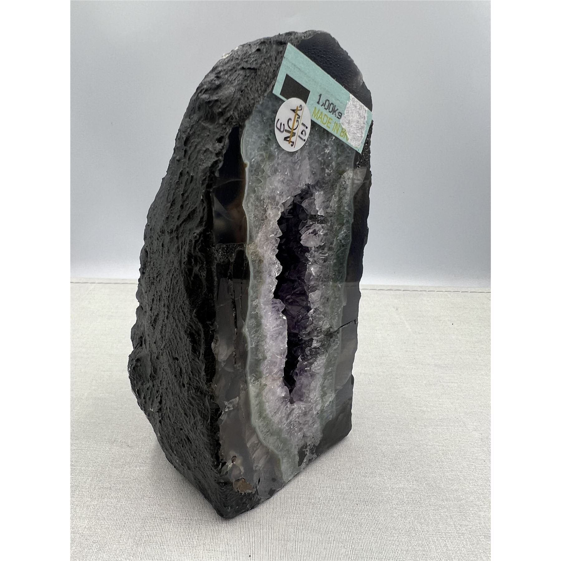 5.4 X 2.1 INCH AMETHYST GEODE WITH GREEN AGATE BANDS