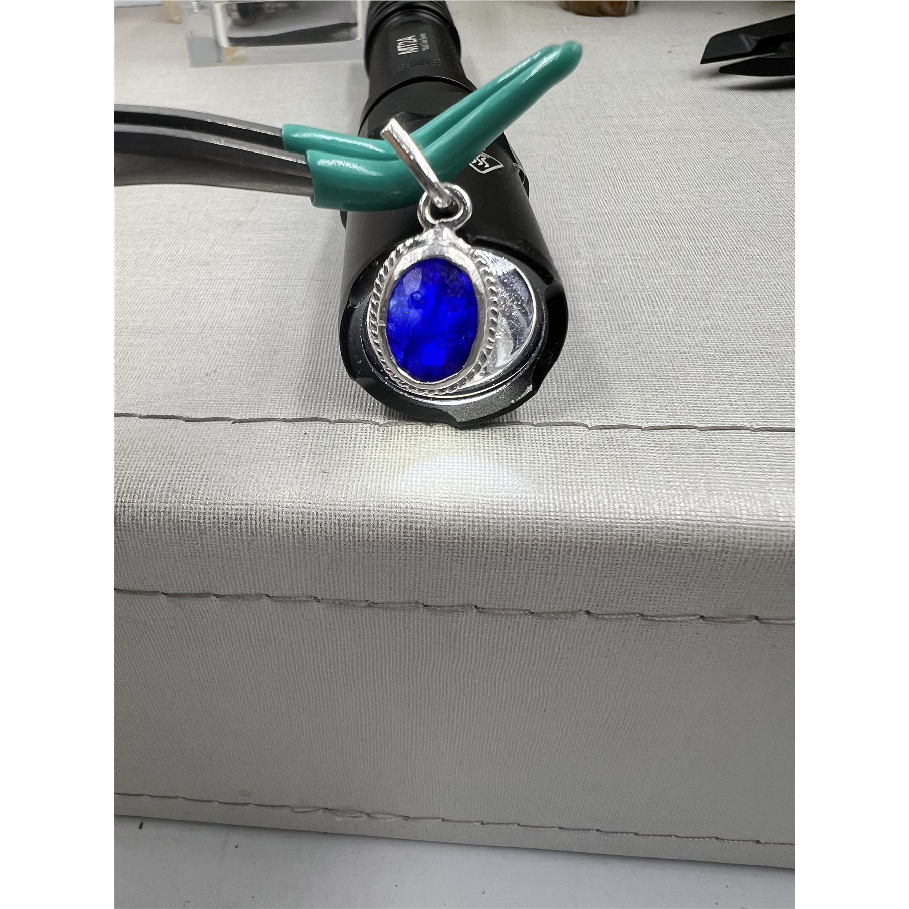 5.65 CT NATURAL SAPPHIRE SILVER PENDANT OVAL CUT CERTIFICATION