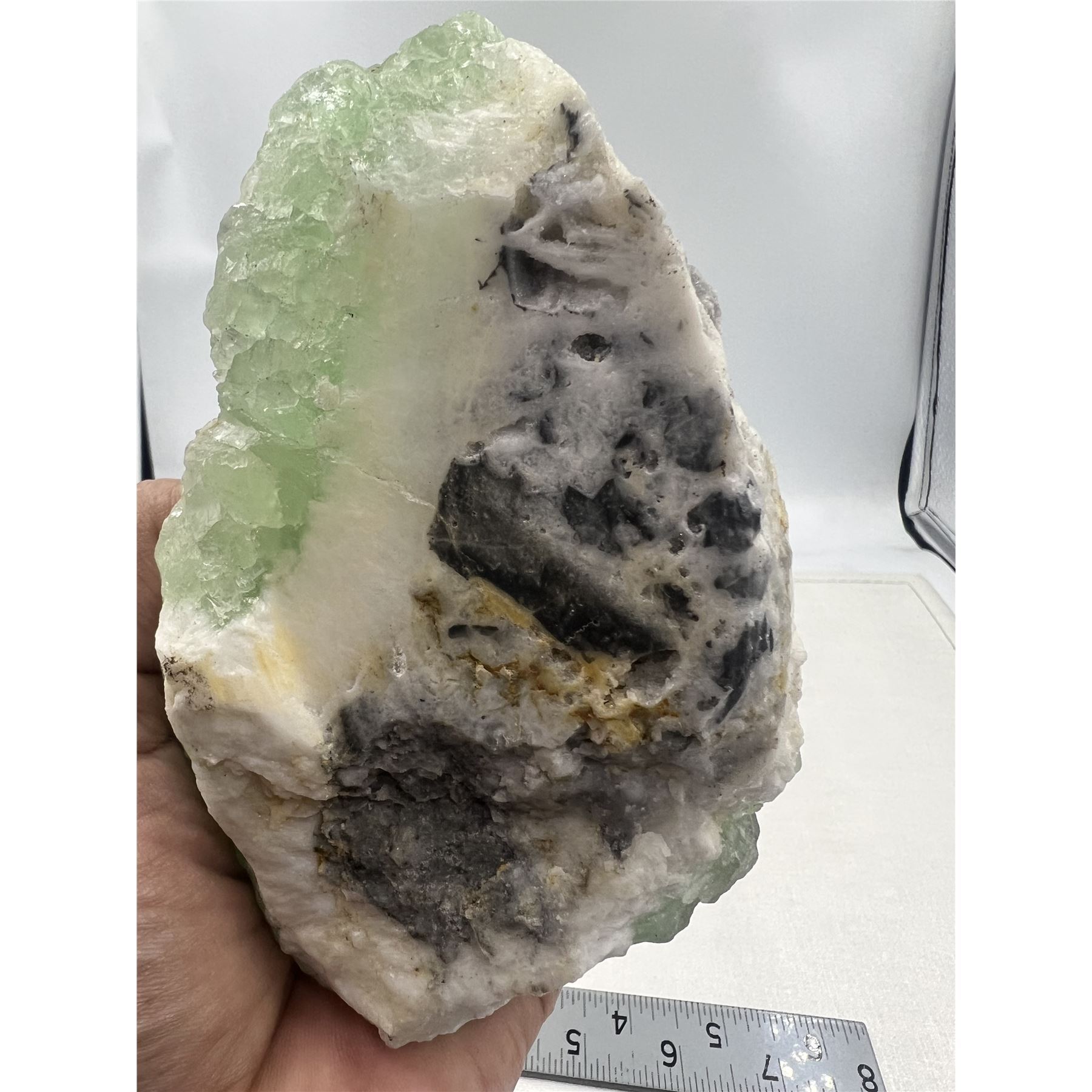 5.88 X 3.65 INCH GREEN FLUORITE WITH YELL0W BARITE SPECIMEN RETAIL $800