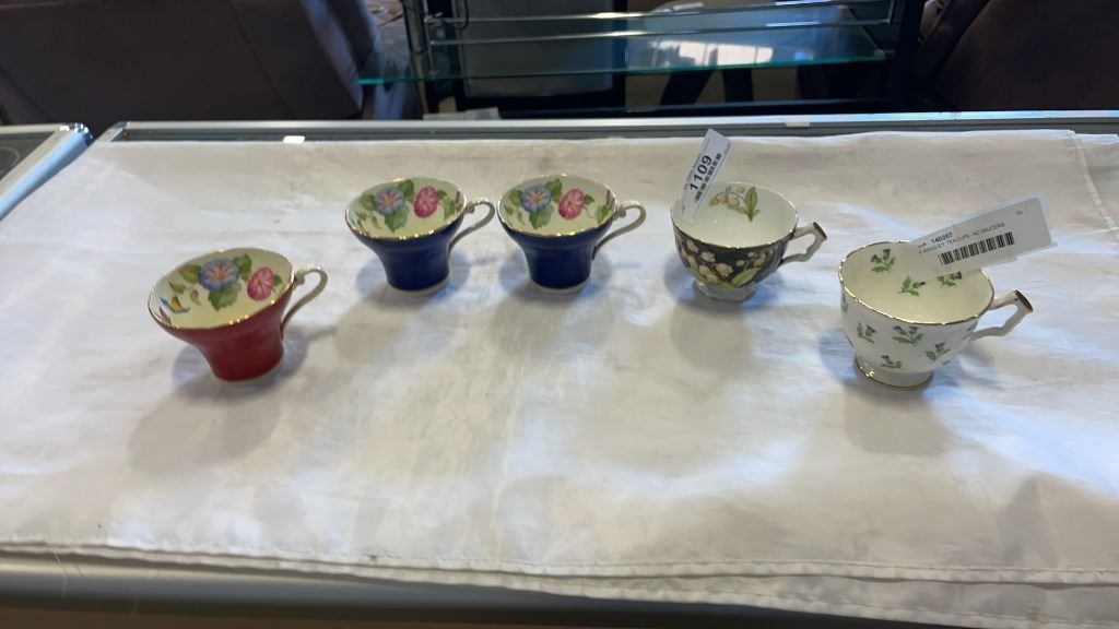 5 ANTIQUE AINSLEY TEA CUPS - NO SAUCERS