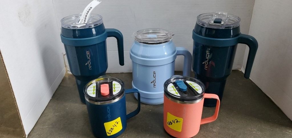 5 AS NEW REDUCE TRAVEL MUGS RETAIL $170