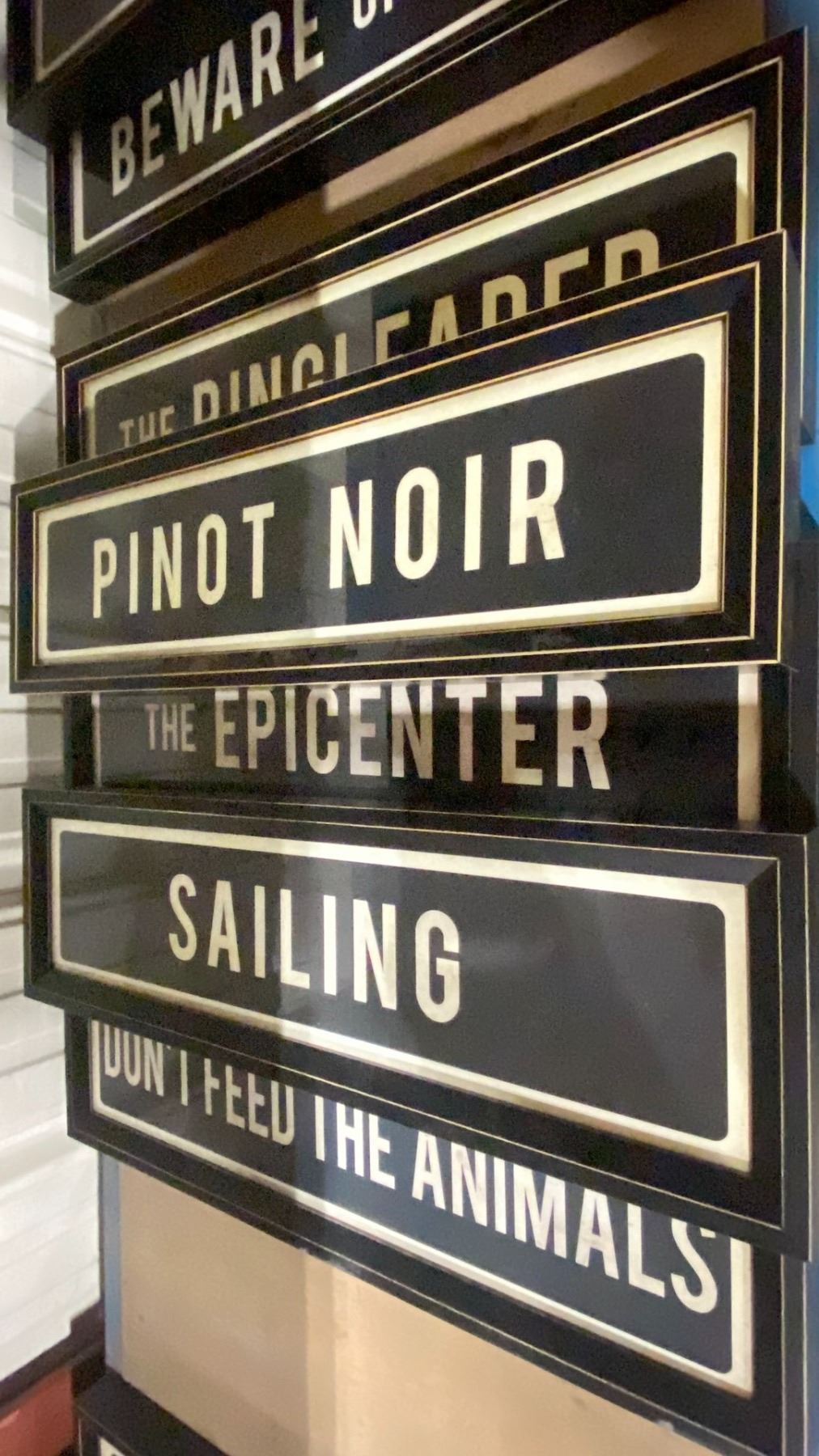 5 ASSORTED BLACK FRAMED STREET SIGN ART