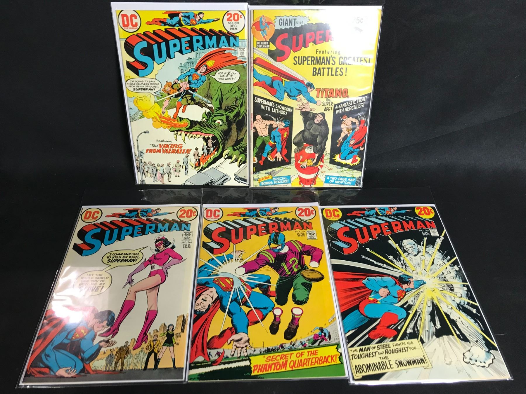5 ASSORTED DC SUPERMAN COMIC BOOKS 4 X 20 CENT AND 1 X 25 CENT ALL IN GREAT CONDITION