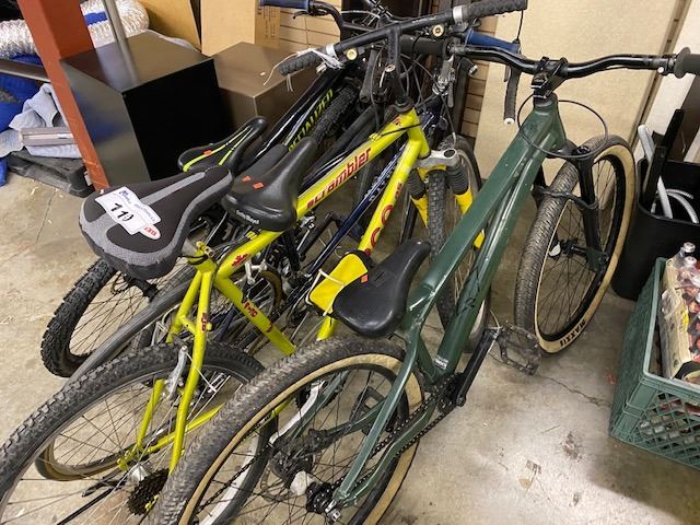 5 ASSORTED PARTS ONLY/NON RIDEABLE BIKES FOR SALVAGE/REPAIR, SIZES, CONDITIONS AND QUALITY VARY, BRANDS INCLUDE: NORCO, RALEIGH, SPECIALIZED AND MORE