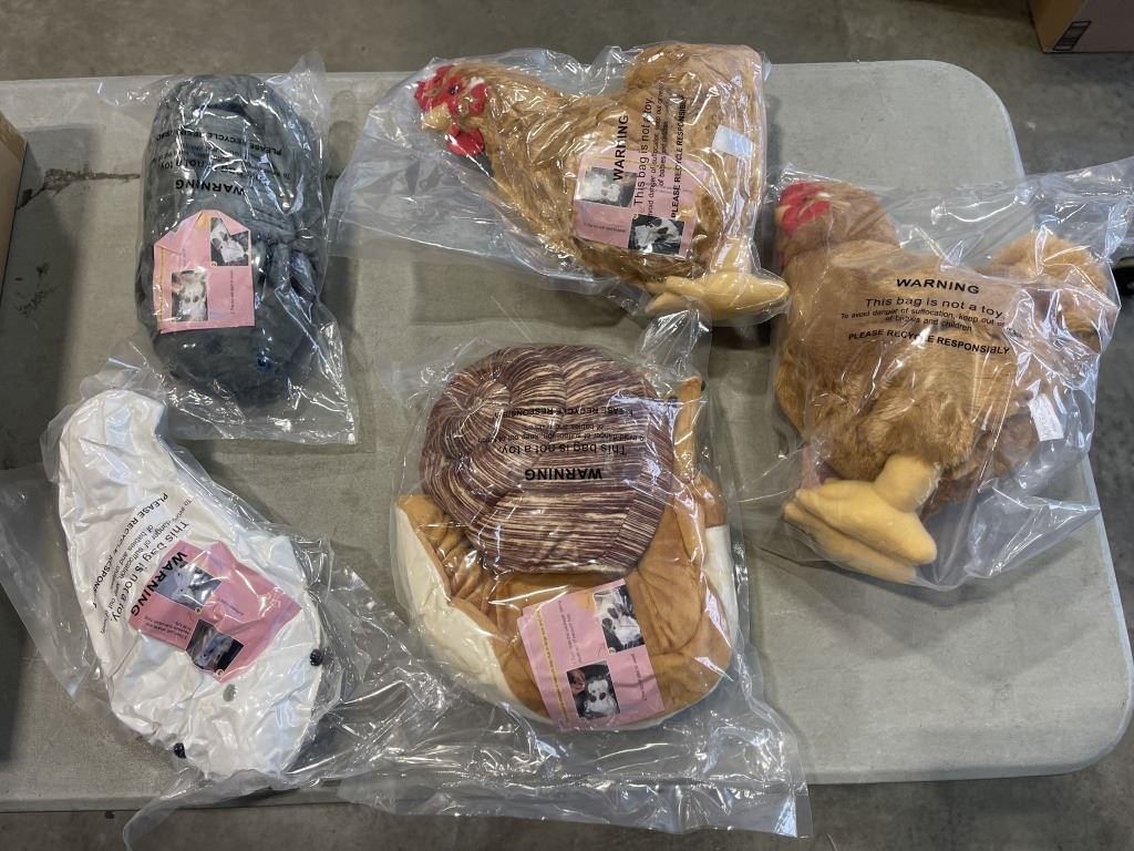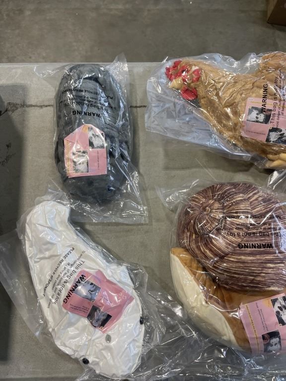 5 ASSORTED PLUSH ANIMALS, CHICKEN, SNAIL AND MORE