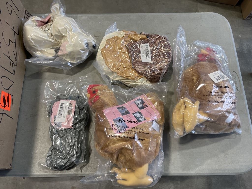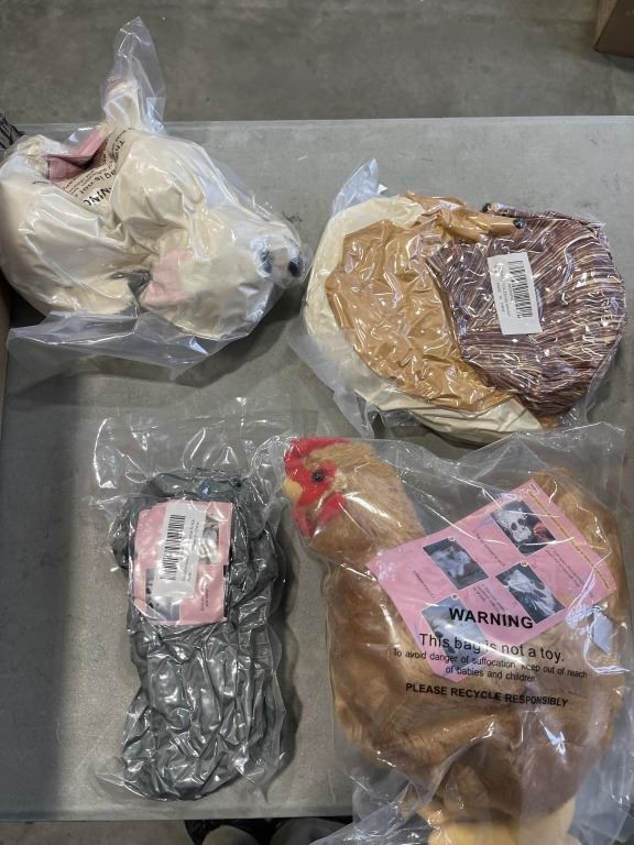 5 ASSORTED PLUSH ANIMALS,POODLE, CHICKEN AND MORE