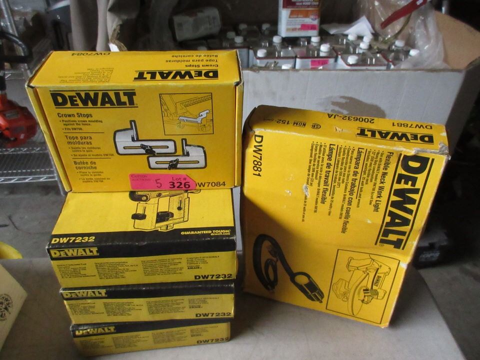 DW7881 Flexible work light, DW7084 crown stops and 3 DW7232 miter saw stand support and stops.