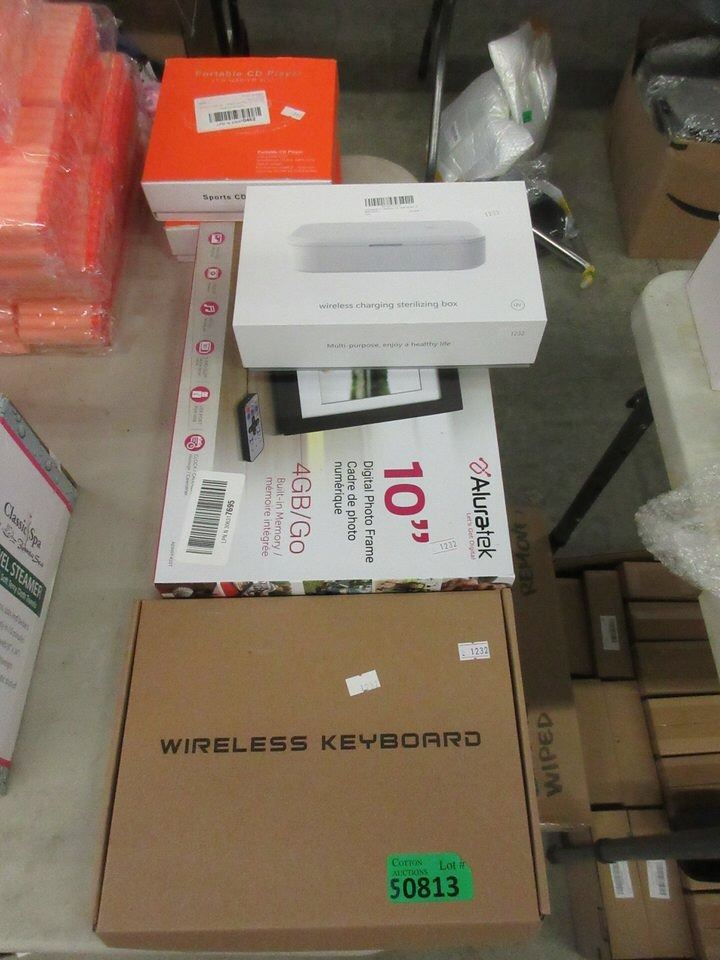 2 Portable CD Players, 10" Digital Photo Frame, Sterilizing box, and Wireless Keyboard.