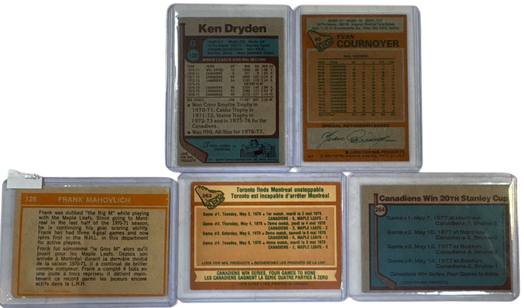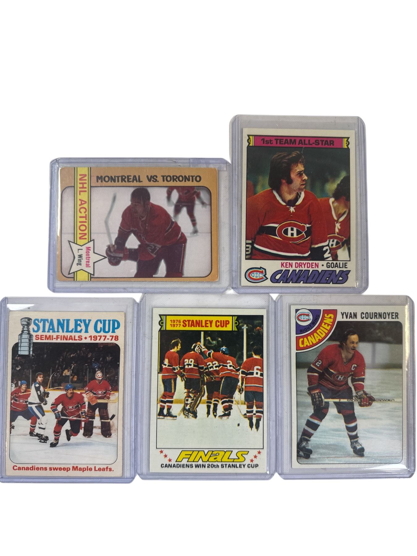 5 Assorted Vintage Montreal Canadians Hockey Cards: Ken Dryden, Yvan Cournoyer, & More